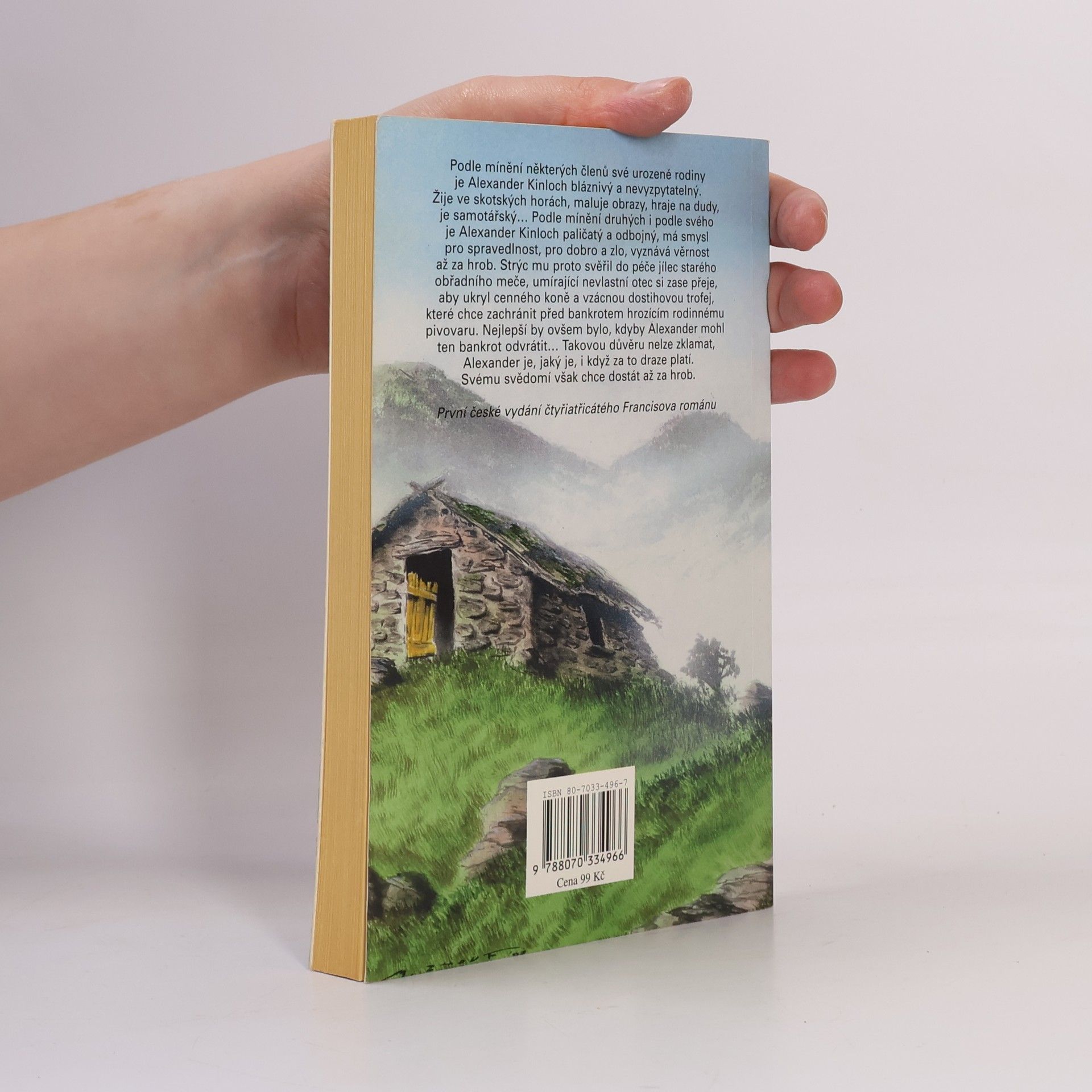 Podle mínění některých členů své urozené rodiny je Alexander Kinloch bláznivý a nevyzpytatelný. Žije ve skotských horách, maluje obrazy, hraje na dudy, je samotářský... Podle mínění druhých i podle svého je Alexander Kinloch paličatý a odbojný, má smysl pro spravedlnost, pro dobro a zlo, vyznává věrnost až za hrob. Strýc mu proto svěřil do péče jílec starého obřadního meče, umírající nevlastní otec si zase přeje, aby ukryl cenného koně a vzácnou dostihovou trofej, které chce zachránit před bankrotem hrozícím rodinnému pivovatu. Nejlepší by ovšem bylo, kdyby Alexander mohl ten bankrot odvrátit... Takovou důvěru nelze zklamat, Alexander je, jeký je, i když za to draze platí. Svému svědomí však chce dostát až za hrob.