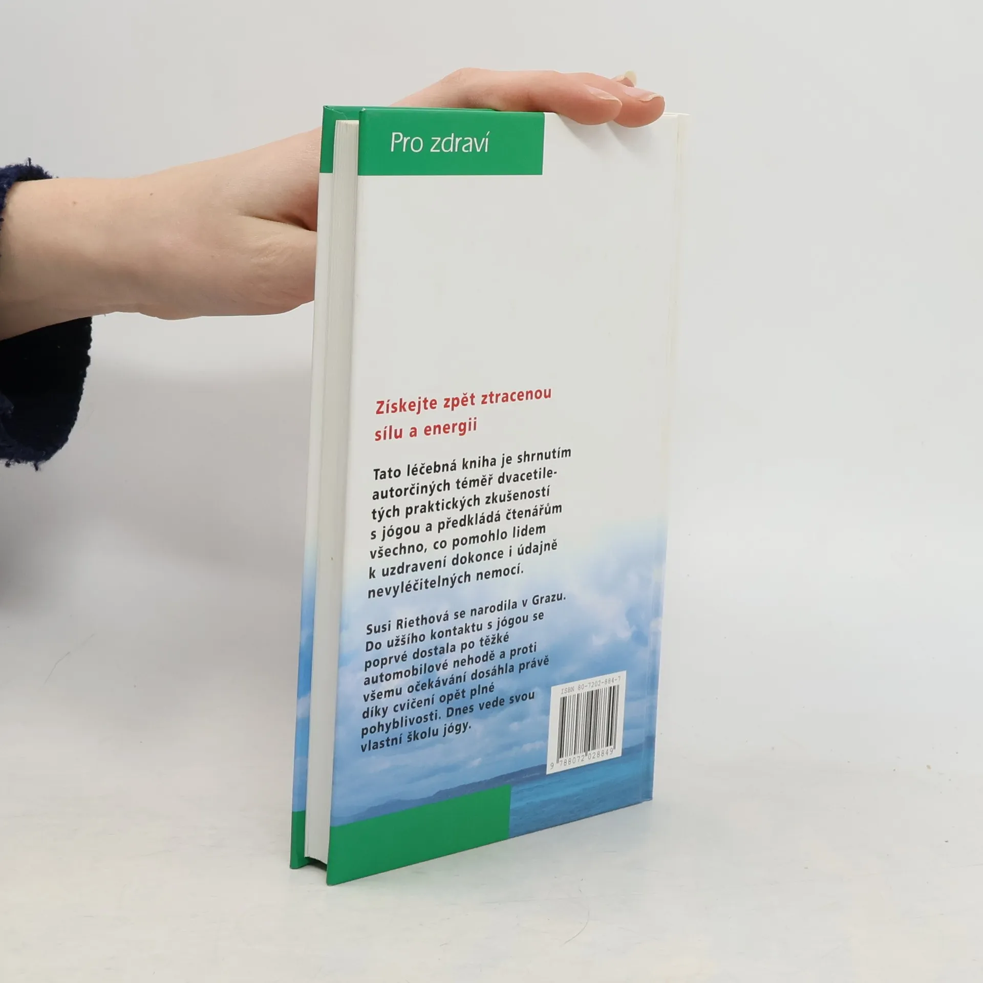 Získejte zpět ztracenou sílu a energii. Tato léčebná kniha je shrnutím autorčiných téměř dvacetiletých praktických zkušeností s jógou a předkládá čtenářům všechno, co pomohlo lidem k uzdravení dokonce i údajně nevyléčitelných nemocí. Susi Riethová se narodila v Grazu. Do užšího kontaktu s jógou se poprvé dostala po těžké automobilové nehodě a proti všemu očekávání dosáhla právě díky cvičení opět plné pohyblivosti. Dnes vede svou vlastní školu jógy.