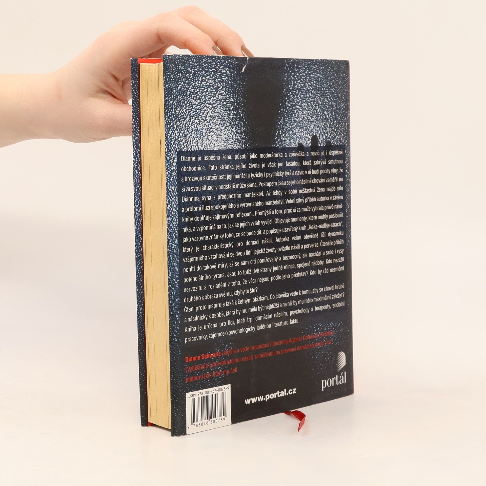 Příběh ženy, která čelila domácímu násilí. Dianne je úspěšná žena, působí jako moderátorka a zpěvačka a navíc je i úspěšná obchodnice. Tato stránka jejího života je však jen fasádou, která zakrývá smutnou a hrozivou skutečnost: její manžel ji fyzicky i psychicky týrá a navíc v ní budí pocity viny, že si za svou situaci v podstatě může sama. Postupem času se jeho násilné chování zaměří i na Diannina syna z předchozího manželství. Až tehdy v sobě nešťastná žena najde sílu a prolomí iluzi spokojeného a vyrovnaného manželství. Velmi silný příběh autorka v závěru knihy doplňuje zajímavými reflexemi. Přemýšlí o tom, proč si za muže vybrala právě násilníka, a vzpomíná na to, jak se jejich vztah vyvíjel. Objevuje momenty, které mohly posloužit jako varovné známky toho, co se bude dít, a popisuje uzavřený kruh „láska-naděje-strach“, který je charakteristický pro domácí násilí. Kniha může povzbudit a inspirovat lidi, kteří žijí v nevyrovnaném vztahu, k hledání sil k nápravě, případně k opuštění bezvýchodné situace. V případě domácího násilí jde totiž leckdy doslova o život. Kniha je určena pro lidi, kteří trpí domácím násilím, psychology a terapeuty, sociální pracovníky, zájemce o psychologicky laděnou literaturu faktu. Dianne Schwartz založila a vede organizaci Educating Against Domestic Violence (Vzděláním proti domácímu násilí) zaměřenou na prevenci domácího násilí a na podporu lidí, kteří mu čelí.