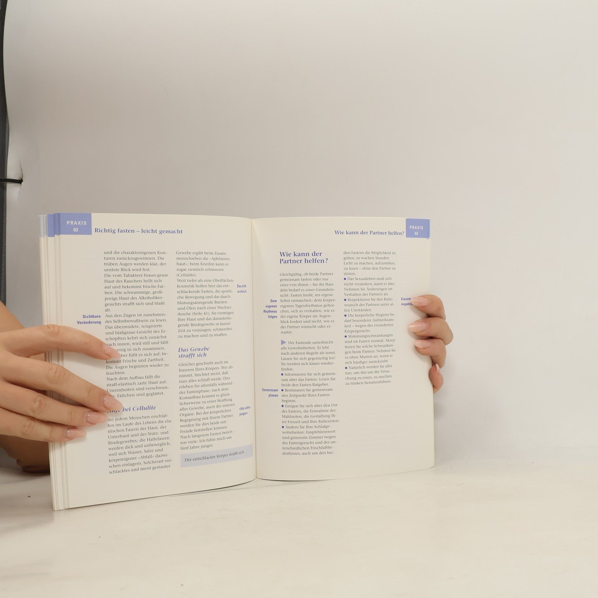 Der Ratgeber beschreibt eine Fastenwoche mit meditativen Elementen sowie die Nachfastenzeit.