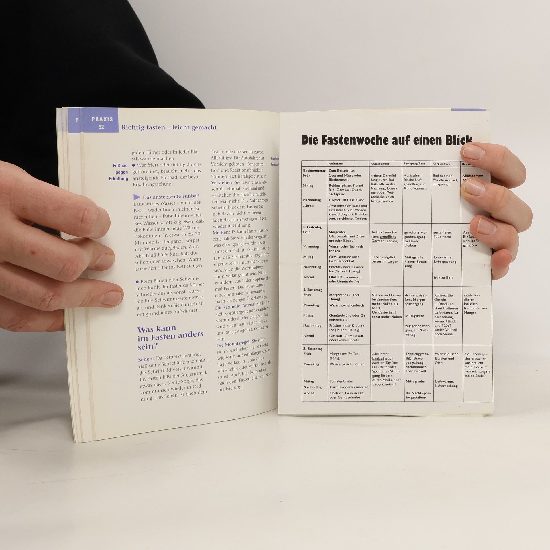 Der Ratgeber beschreibt eine Fastenwoche mit meditativen Elementen sowie die Nachfastenzeit.