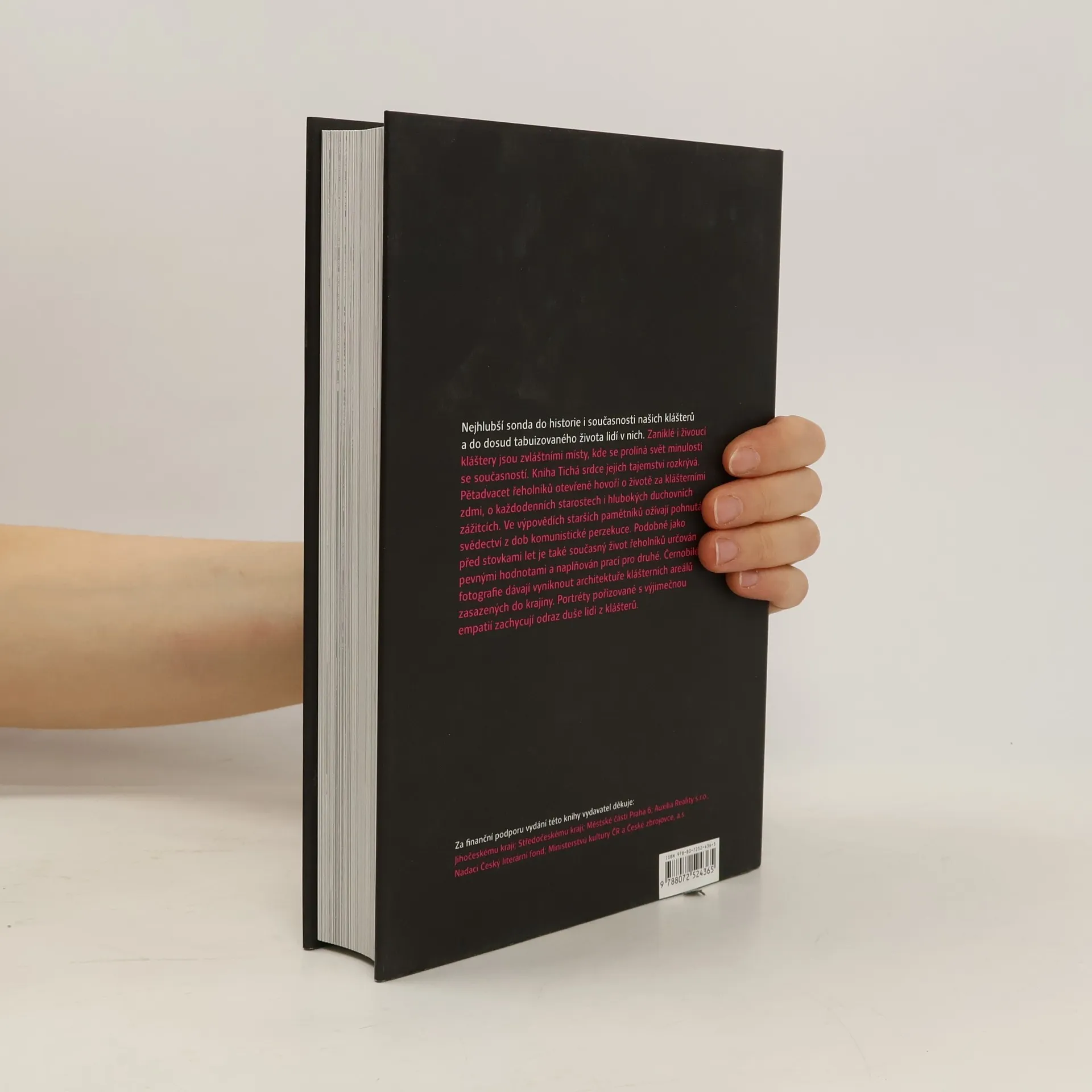 Tato výjimečná kniha nabízí nejhlubší pohled do historie a současnosti klášterů, přičemž se zaměřuje na dosud tabuizovaný život lidí v nich. Autorka, renomovaná spisovatelka Alena Ježková, více než pět let shromažďovala písemné podklady a zvukové záznamy, studovala historii řeholních řádů a navštěvovala kláštery v Čechách a na Moravě. Publikace je vyčerpávajícím a čtivým exkurzem do historie šesti řádů: benediktinů, cisterciáků, premonstrátů, františkánů, dominikánů a boromejek. Obsahuje téměř šedesát esejistických textů o známých klášterech jako Břevnov či Strahov, ale také o opomíjených a zaniklých místech. Významnou součástí knihy jsou výpovědi pětadvaceti řeholníků, včetně kardinála Dominika Duky a dalších významných postav. Vzpomínky pamětníků přinášejí otřesná svědectví z 50. let, kdy komunistický režim kláštery zrušil a řeholníky pronásledoval. Kniha se nezaměřuje pouze na fakta, ale především na otevřené výpovědi lidí žijících podle pevných hodnot a pomáhajících druhým. Hovoří o životě v komunitě a duchovních zážitcích. Text doplňují černobílé fotografie Jiřího Chalupy, které zachycují atmosféru a empatii k místům i lidem.