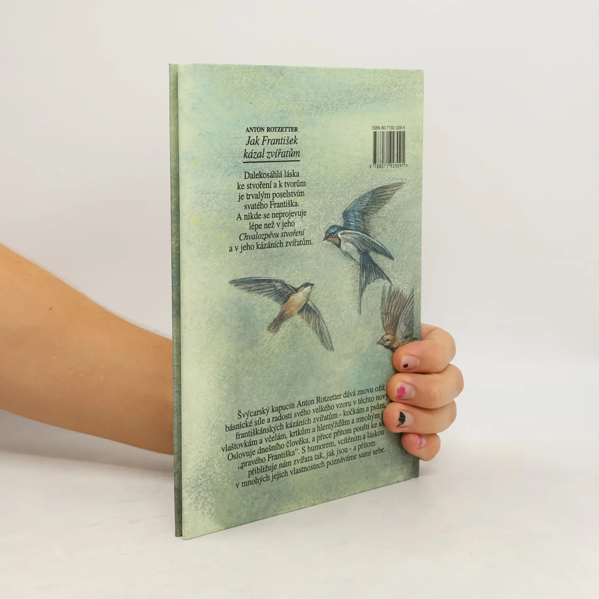 Švýcarský kapucín Anton Rotzetter dává znovu ožít básnické síle a radosti svého velkého vzoru v těchto nových františkánských kázáních zvířatům – kočkám a psům, vlaštovkám a včelám, krtkům a hlemýžďům a mnohým jiným. Oslovuje dnešního člověka, a přece přitom pouští ke slovu „pravého Františka“. S humorem, vcítěním a láskou přibližuje nám zvířata tak, jak jsou – a přitom v mnohých jejich vlastnostech poznáváme sami sebe.