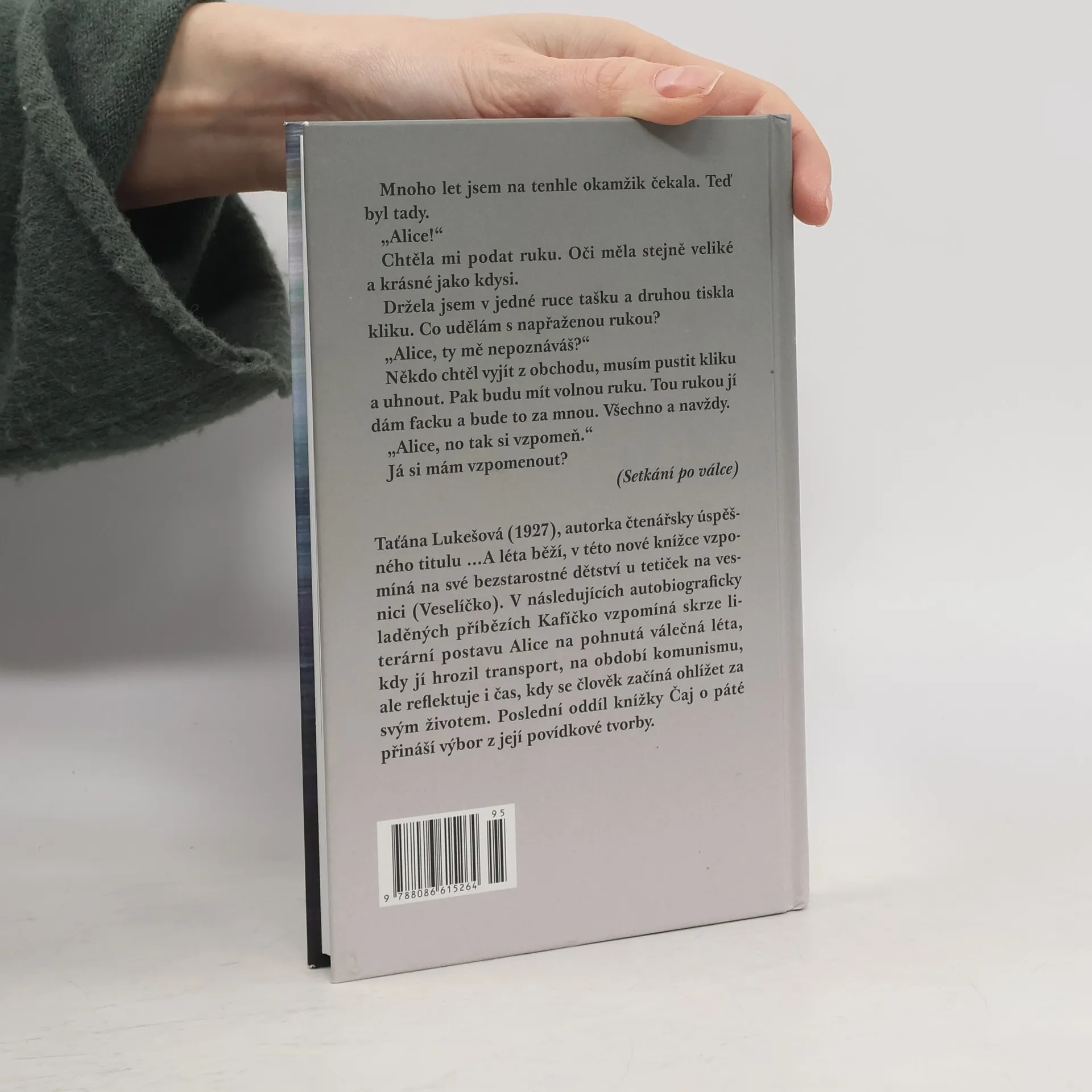Taťána Lukešová (1927), autorka čtenářsky úspěšného titulu …A léta běží, v této nové knížce vzpomíná na své bezstarostné dětství u tetiček na vesnici (Veselíčko). V následujících autobiograficky laděných příbězích Kafíčko vzpomíná skrze literární postavu Alice na pohnutá válečná léta, kdy jí hrozil transport, na období komunismu, ale reflektuje i čas, kdy se člověk začíná ohlížet za svým životem. Poslední oddíl knížky Čaj o páté přináší výbor z její povídkové tvorby.