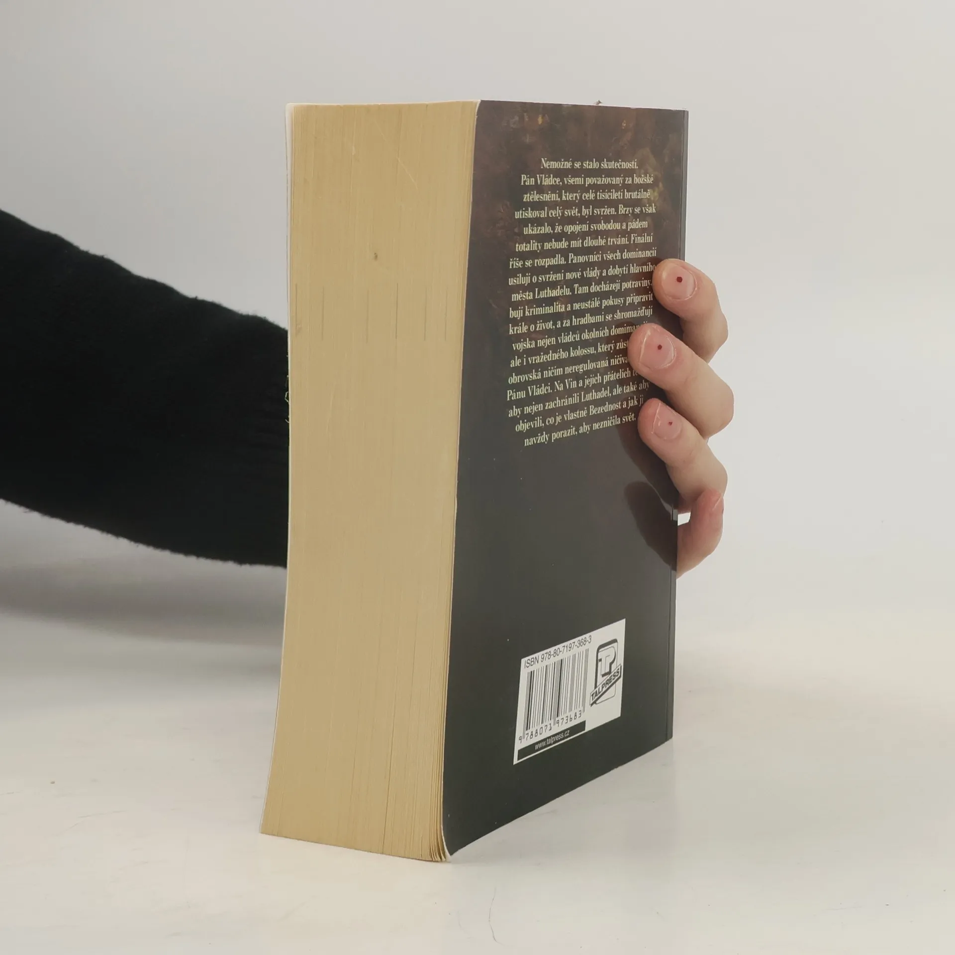 Nemožné se stalo skutečností. Pán Vládce, všemi považovaný za božské ztělesnění, který celé tisíciletí brutálně utiskoval celý svět, byl svržen. Brzy se však ukázalo, že opojení svobodou a pádem totality nebude mít dlouhé trvání. Finální říše se rozpadla. Panovníci všech dominancií usilují o svržení nové vlády a dobytí hlavního města Luthadelu. Tam docházejí potraviny, bují kriminalita a neustálé pokusy připravit krále o život, a za hradbami se shromažďují vojska nejen vládců okolních domimancií, ale i vražedného kolossu, který zůstal jako obrovská ničím neregulovaná ničivá síla po Pánu Vládci... Na Vin a jejích přátelích teď je, aby nejen zachránili Luthadel, ale také aby objevili, co je vlastně Bezednost a jak ji navždy porazit, aby nezničila svět.