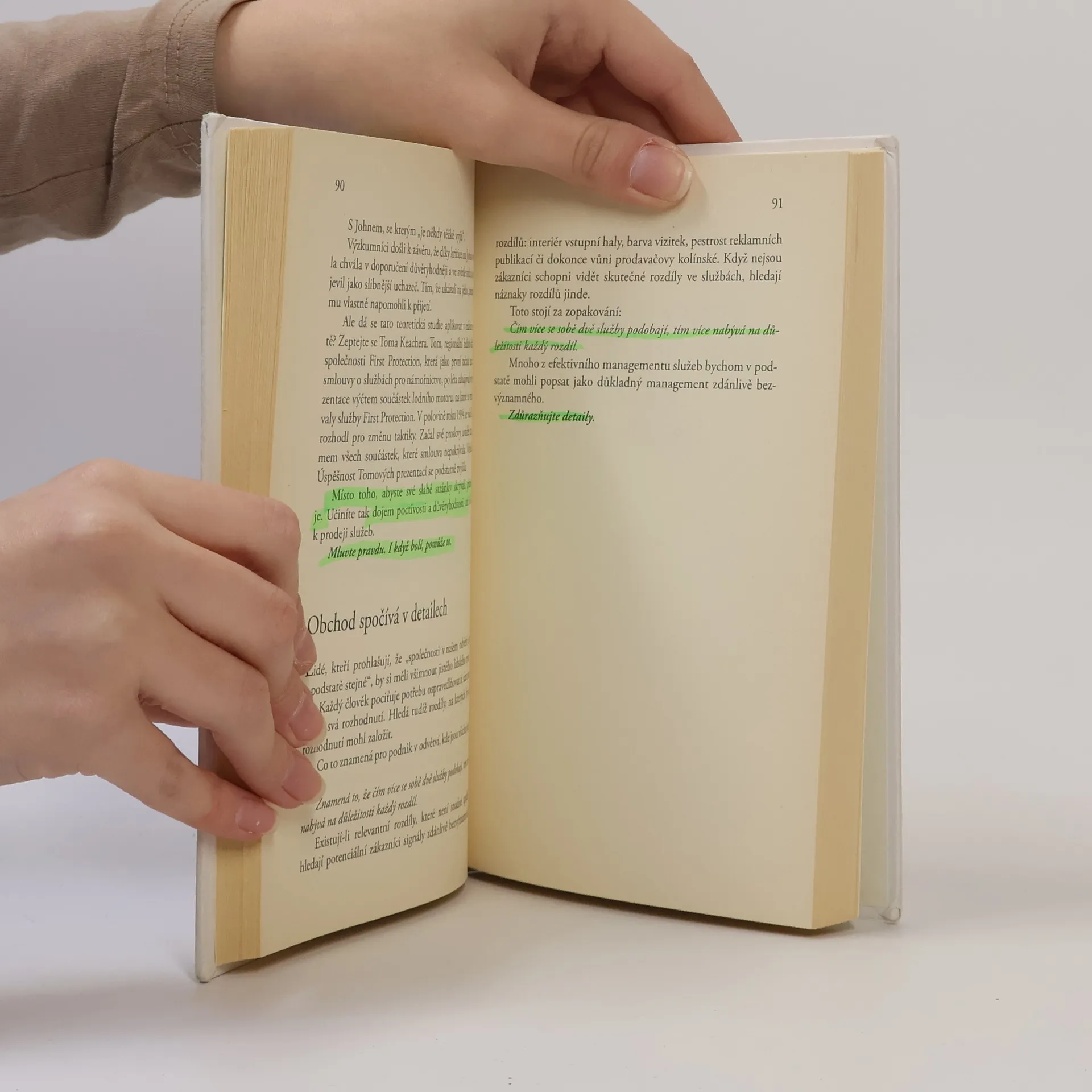 Autor radí, jak prodávat služby a analyzuje klíčové faktory marketingu služeb (průzkum trhu, public relations, prezentační dovednosti, postavení firmy i služby na trhu, reklama a propagace, tvorba cen, vliv značky a jména společnosti, úspěšná komunikace a zásady udržení si zákazníků). Přináší odpovědi mimo jiné na tyto otázky: proč je chyba snažit se být nejlepší, jak nikdy nepojmenovat svou firmu, co si lidé myslí, když říkají, že poskytujete dobré služby, co by vám Picasso poradil k tvorbě cen, jak ušetřit půl milionu a jaký je nejrychlejší způsob zvýšení prodejní síly. Kniha se zakládá na pětadvacetiletých zkušenostech odborníků různých profesí a předává své moudrosti prostřednictvím často překvapivých příkladů.