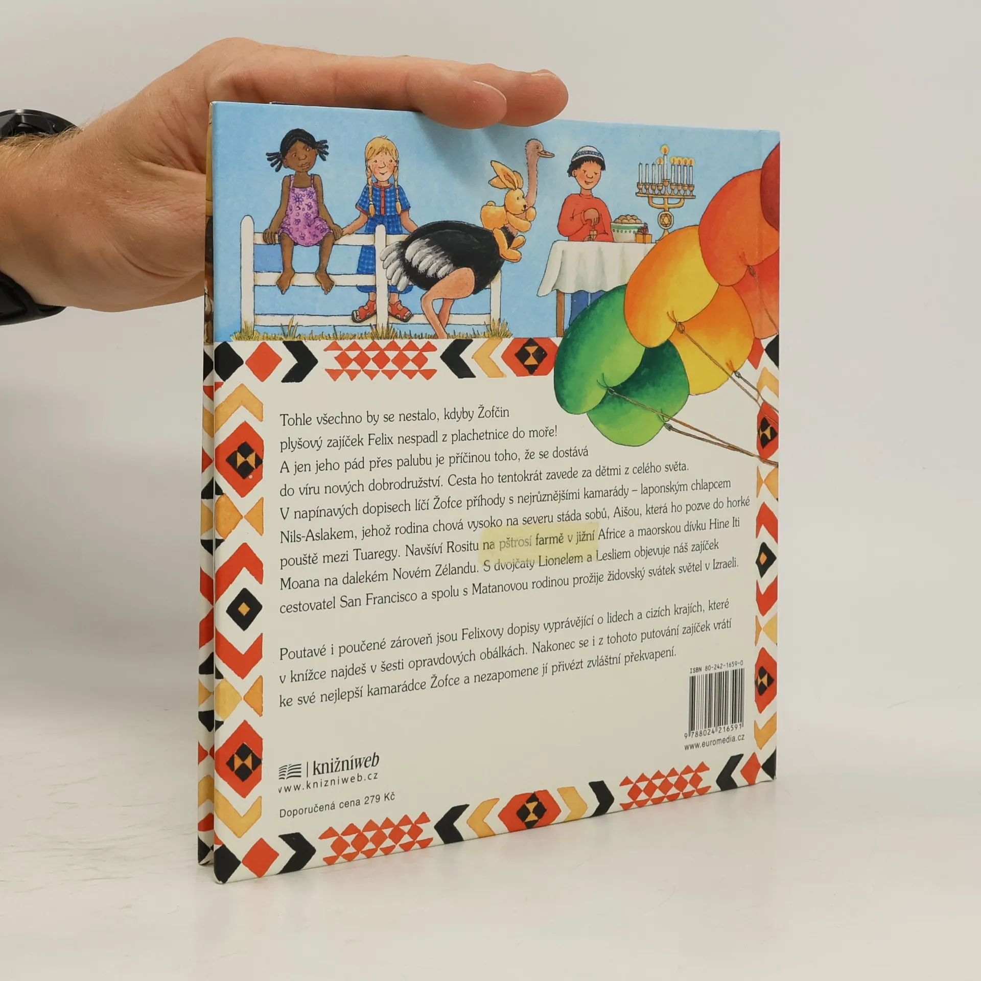 Další kniha z populární edice dobrodružství zajíčka Felixe, ve které se malé děti mohou hravou formou seznámit s tím, co se jednou budou učit ve škole. Součástí knihy je také: návod na tkaní + tkalcovský rám a člunek z kartonu + návod na hru Dreidel + rozložená papírová kostka + fotografie 2 chlapců se zajíčkem + 6 dopisů od zajíčka Felixe + návod na hru Muu toorere + textilní hrací podložka + 4 bílé a 4 černé hrací kameny.