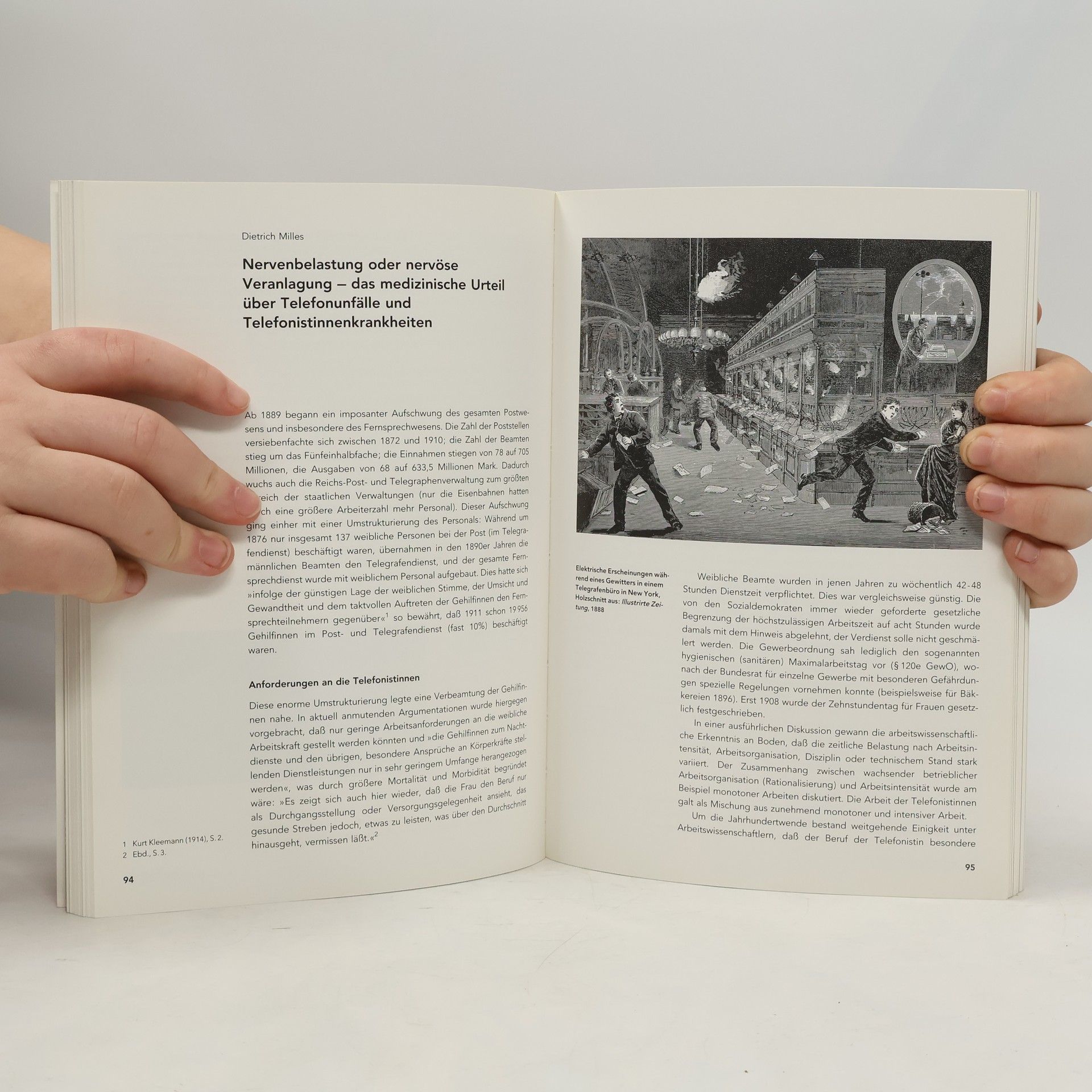 Beschreibung des Berufsbildes der Telefonistin, ihre Arbeits- und Lebensbedingungen sowie die Entwicklung der technischen Geräte.