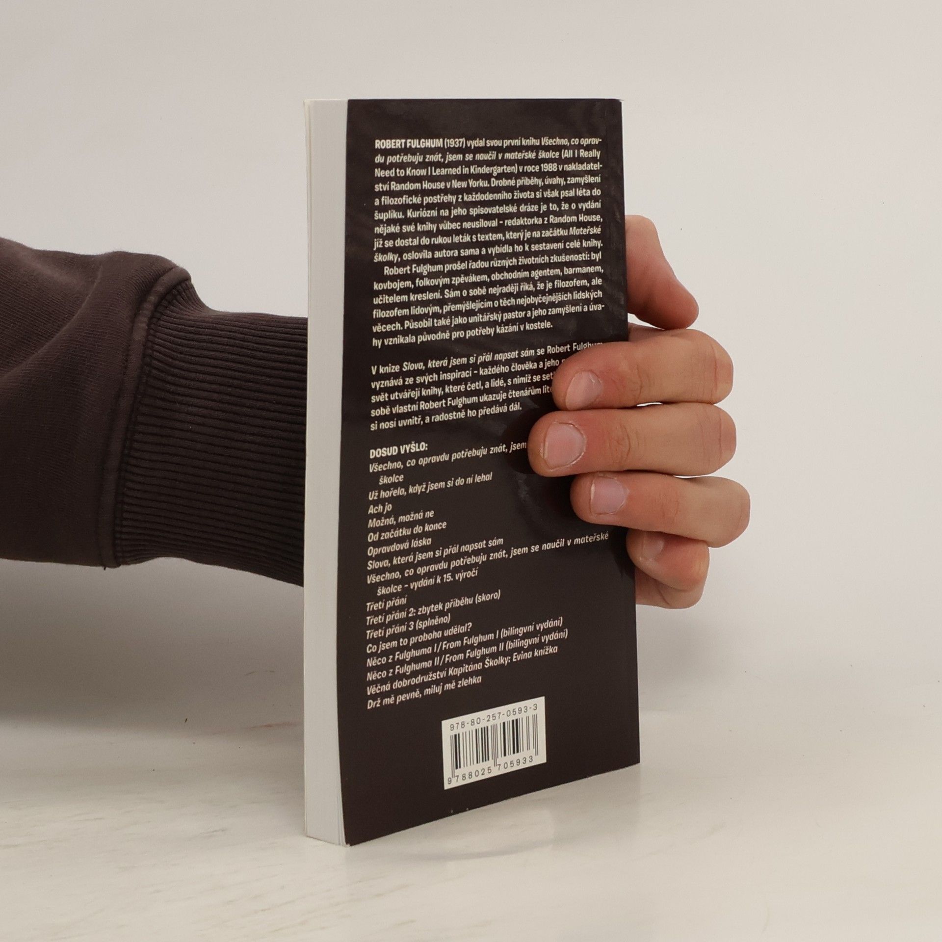 V knize Slova, která jsem si přál napsat sám se Robert Fulghum vyznává ze svých inspirací – každého člověka a jeho myšlenkový svět utvářejí knihy, které četl, a lidé, s nimiž se setkal. S pokorou sobě vlastní autor ukazuje literární svět, jejž si nosí uvnitř, a předává ho tímto dál.
