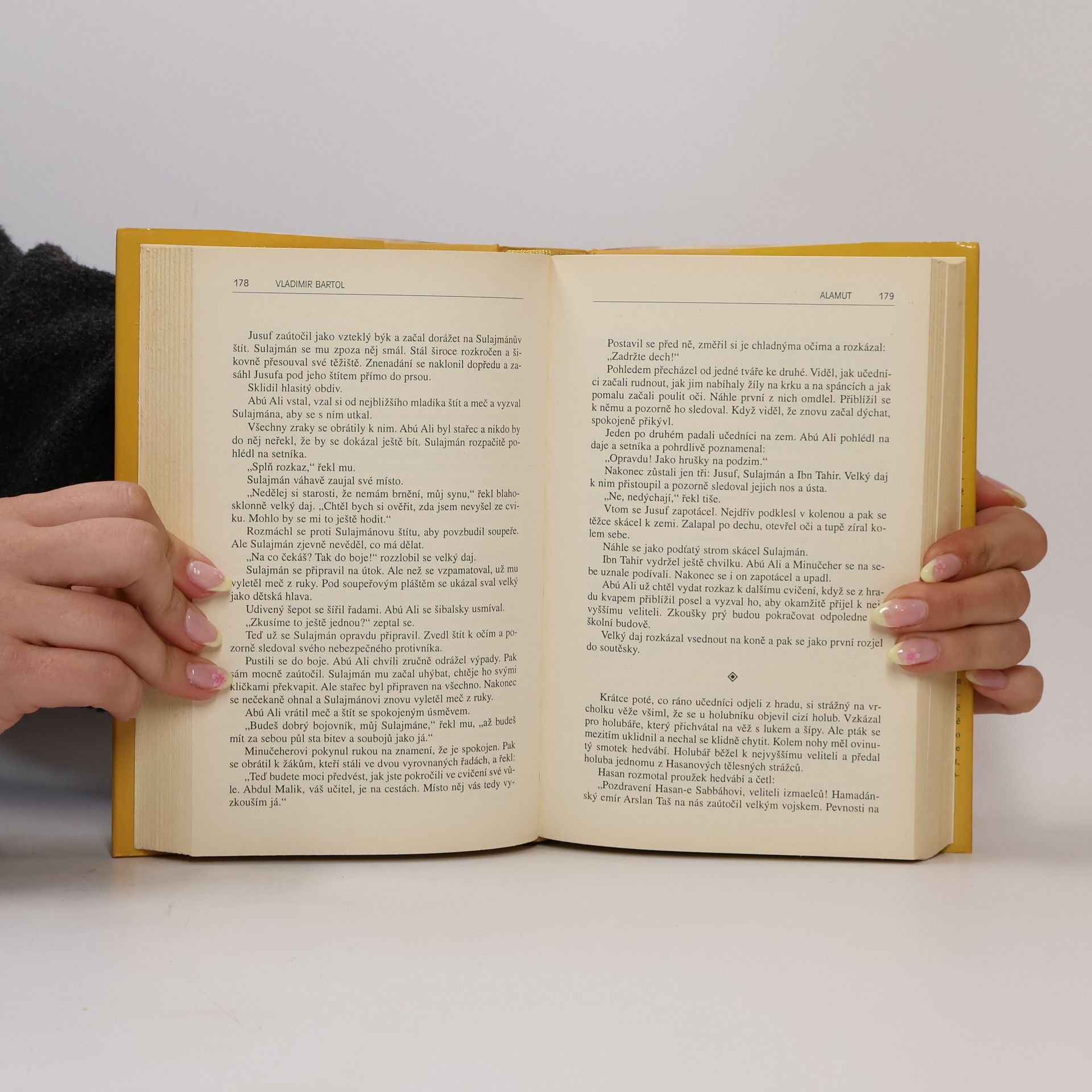 Román o orientálním vládci, který si pomocí rafinovaného mýtu vytváří spolehlivý úderný odddíl naprosto oddaných bojovníků, se odehrává v 11. století v Persii. Román byl napsán na základě jedné epizody z románu Marca Pola Milion. Je to příběh o ďábelsky inteligentním a rafinovaném perském vládci, jenž si získal naprostou oddanost vybraných mladíků tak, že je ve stavu drogového omámení přenášel do fiktivního ráje, který vystavěl podle orientálního vkusu. Krásné, v umění a lásce vyškolené dívky byly vychovávány k potěše bojovníků jako odměna za jejich hrdinské skutky. Dívky jim vytvářely iluzi ráje, který jim slíbil Alláh po mučednické smrti. Mládenci, kteří se v této promyšlené pasti jednou ocitnou, jsou pak ochotni jít dobrovolně na smrt, jen aby se znovu dostali do vysněných míst. Za základě současných politických zkušeností je román překvapivě aktuální.