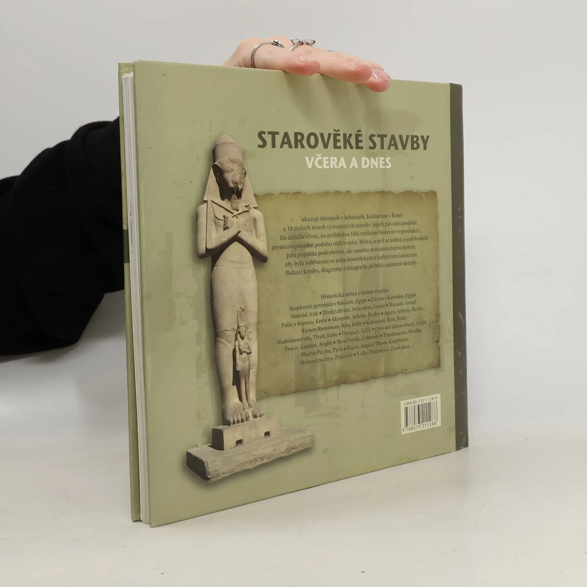 Kniha založená na chytrém nápadu: barevné fotografie dochovaných zbytků velkých staveb evropské, asijské, americké a africké minulosti se překrývají folií, na níž je rekonstrukční kresba. Tak se nám stavby představí v podobě, jakou měly v dobách své největší slávy. Obrázky provází popis, výklad historického a kulturního kontextu stavby, doplňkové fotografie, kresby detailů atd. 2. vydání. zdroj: www.bux.cz