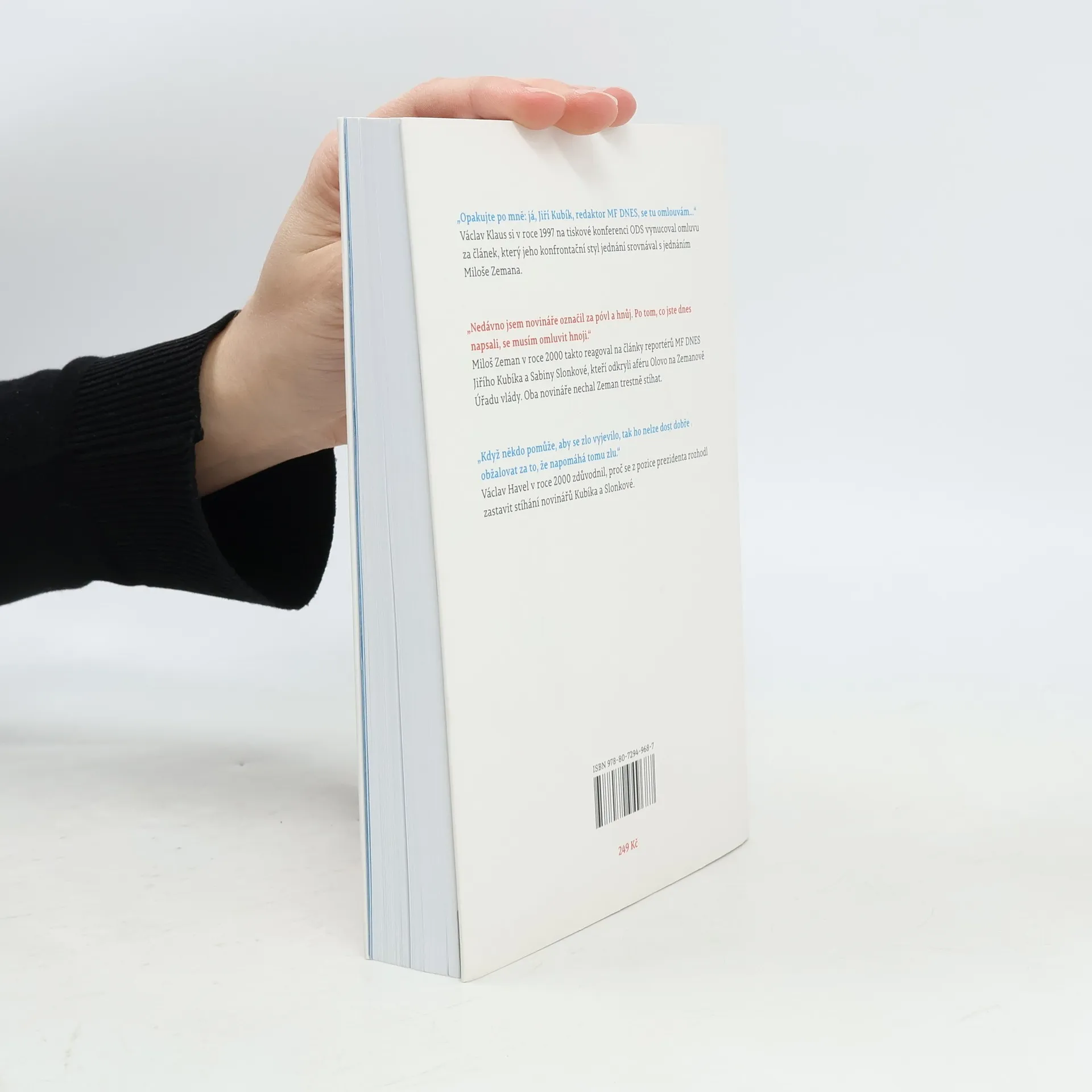 Česko na cestě od Havla k Zemanovi. První všelidová prezidentská volba přinesla vlnu vypjatých emocí, které zřetelně odrážejí očekávání i frustrace společnosti v posledních letech. Díky mediálnímu ohlasu si pak většina z nás také položila otázku, jaký je obecně náš postoj k úřadu prezidenta a jakou roli v životě společnosti mu přisuzujeme. A to jsou mimo jiné rovněž otázky, s nimiž se známý redaktor MF DNES Jiří Kubík obracel v průběhu let na řadu významných osobností veřejného života. Rozhovory s Václavem Havlem, Václavem Klausem, Milošem Zemanem, ale také Zdeňkem Svěrákem, Michalem Vieweghem, Věrou Čáslavskou, Vladimírem Franzem či Dominikem Dukou a mnoha dalšími, které byly publikovány na stránkách deníku, však tvoří pouze jednu rovinu knihy. Jiří Kubík je opatřil rozsáhlými komentáři, které jednak odhalují pozadí vzniku těchto rozhovorů a s časovým odstupem také vysvětlují a „dovypravují“ politická témata a kauzy, o nichž se hovořilo a které v posledních letech hýbaly společností. Kniha je tak současně velmi otevřeným pohledem do zákulisí novinářské práce, do techniky a strategií vedení rozhovorů a kromě toho také nečekaně zajímavými politickými dějinami.