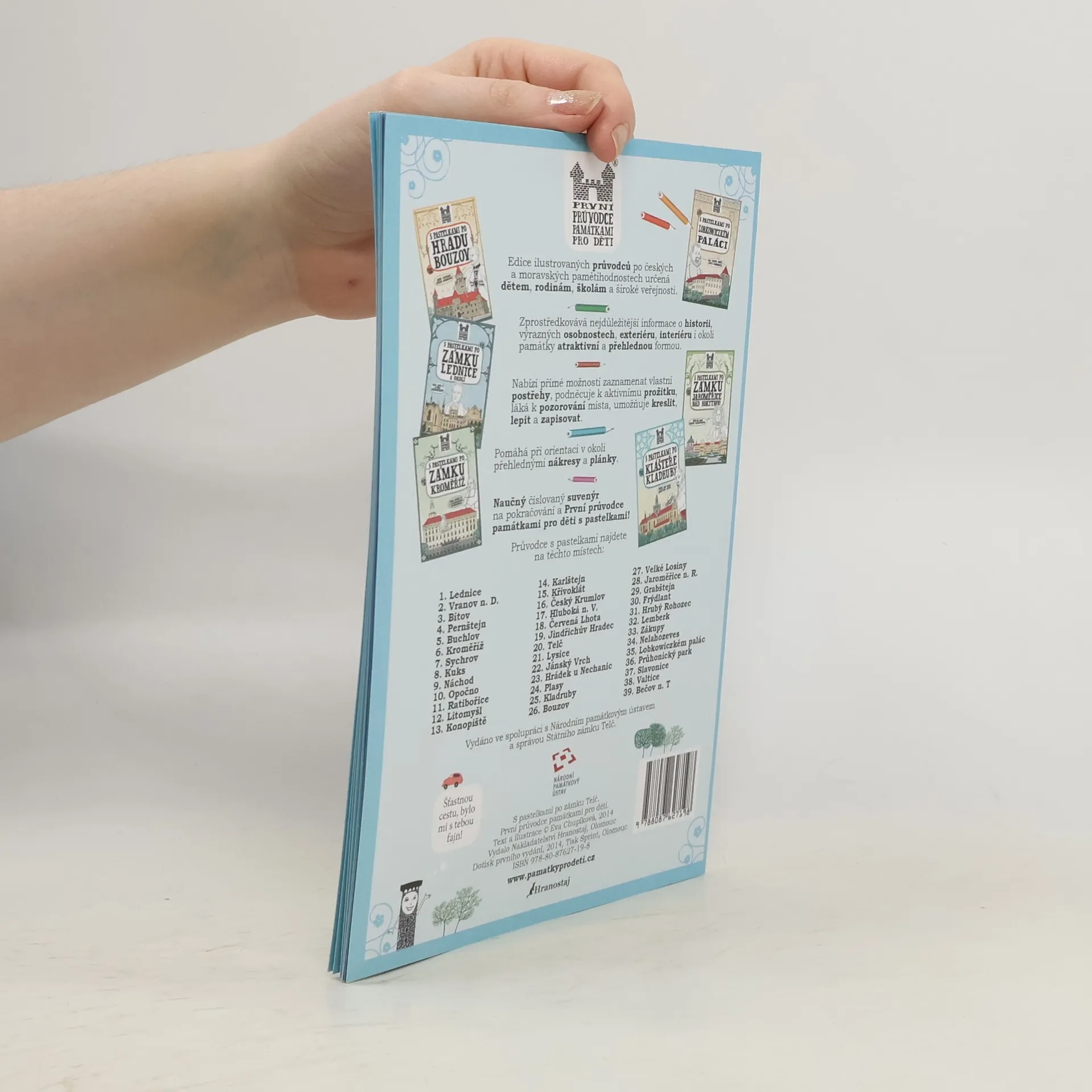 Průvodce z edice ilustrovaných průvodců s pastelkami po českých a moravských pamětihodnostech určená dětem, rodinám, školám a všem návštěvníkům památek. Zprostředkovává nejdůležitější informace o historii, výrazných osobnostech, exteriér, interiér i okolí památky atraktivní a přehlednou formou. Nabízí přímé možnosti zaznamenat vlastní postřehy, podněcuje k aktivnímu prožitku, láká k pozorování místa, umožňuje kreslit, lepit a zapisovat. Pomáhá při orientaci v okolí přehlednými nákresy a plánky. Naučný suvenýr na pokračování a první průvodce památkami pro děti s pastelkami. Součástí balení průvodce jsou malé pastelky (6 ks) k okamžitému využití při návštěvě zámku.