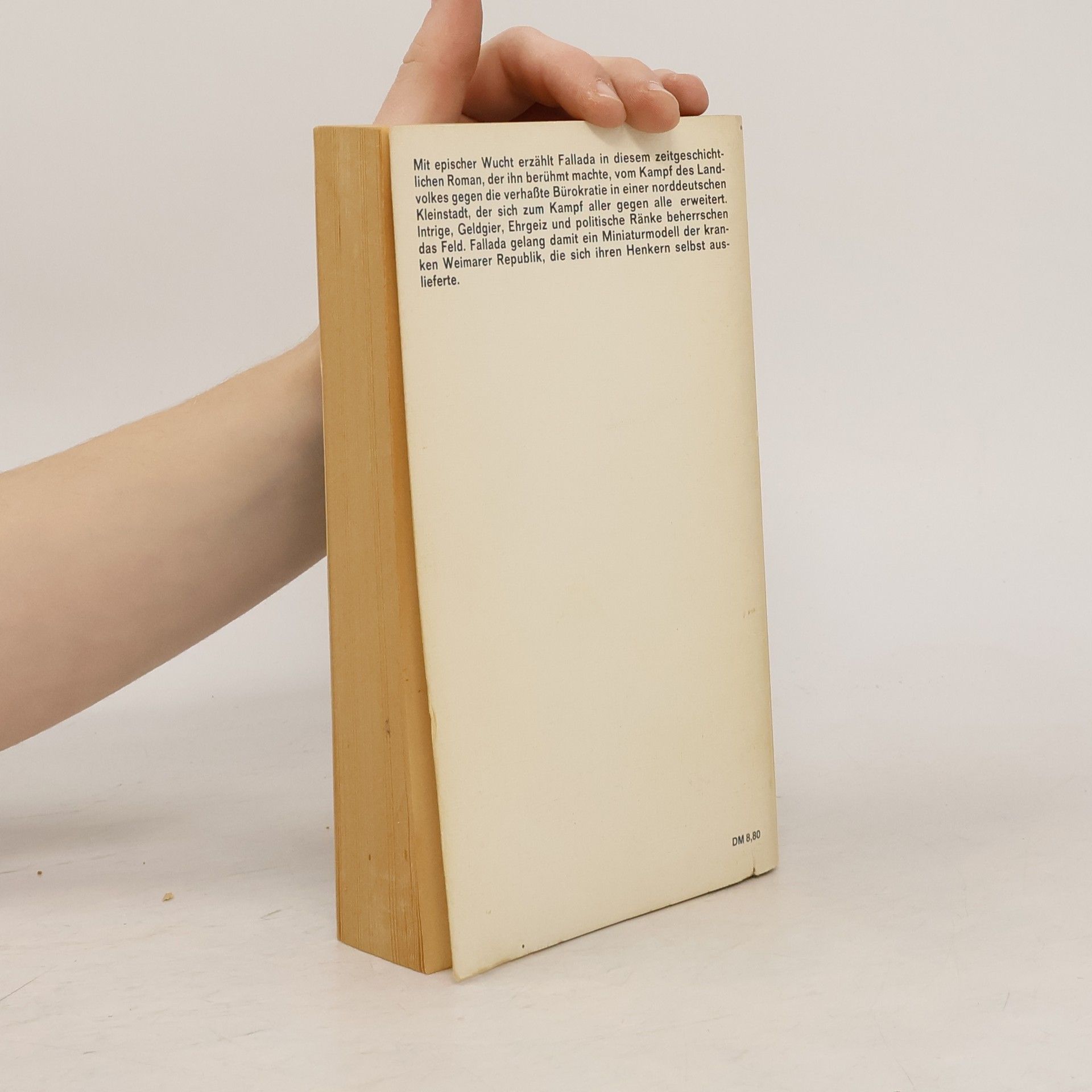 Mit epischer Wucht erzählt Fallada in diesem zeitgeschichtlichen Roman, der ihn berühmt machte, vom Kampf des Landvolkes gegen die verhasste Bürokratie in einer norddeutschen Kleinstadt, der sich zum Kampf aller gegen alle ausweitet. Intrige, Geldgier, Ehrgeiz und politische Ränke beherrschen das Feld. Fallada gelang damit ein Miniaturmodell der kranken Republik von Weimar, die sich ihren Henkern selbst auslieferte.