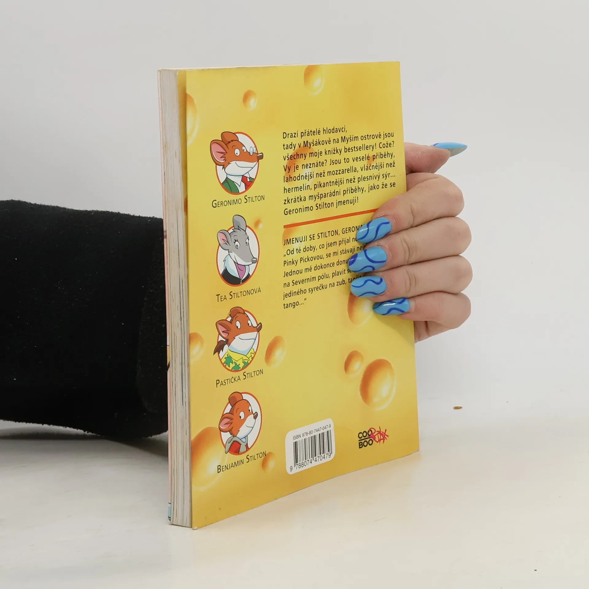 Znáte z TV seriálu! Vážení přátelé hlodavci, vítejte v MYŠPARÁDNÍCH DOBRODRUŽSTVÍCH Geronima Stiltona. Tento výjimečný myšák žije v Myšákově na podivuhodném Myším ostrově, který vypadá jako plátek sýra a leží v jižní části Krysotického moře. Geronimo ve volném čase sbírá historické kůrky od parmazánu z 18. století, ale hlavně strašně rád píše knihy, v nichž vypráví o svých příhodách. Na stránkách této knihy se vám představí i s celou redakcí Hlodavcových listů a vy tak rovnýma nohama či přímo po hlavě můžete skočit do kolotoče dobrodružství a veselých příhod. Ale pozor! Bolení břicha od smíchu není vyloučeno!
