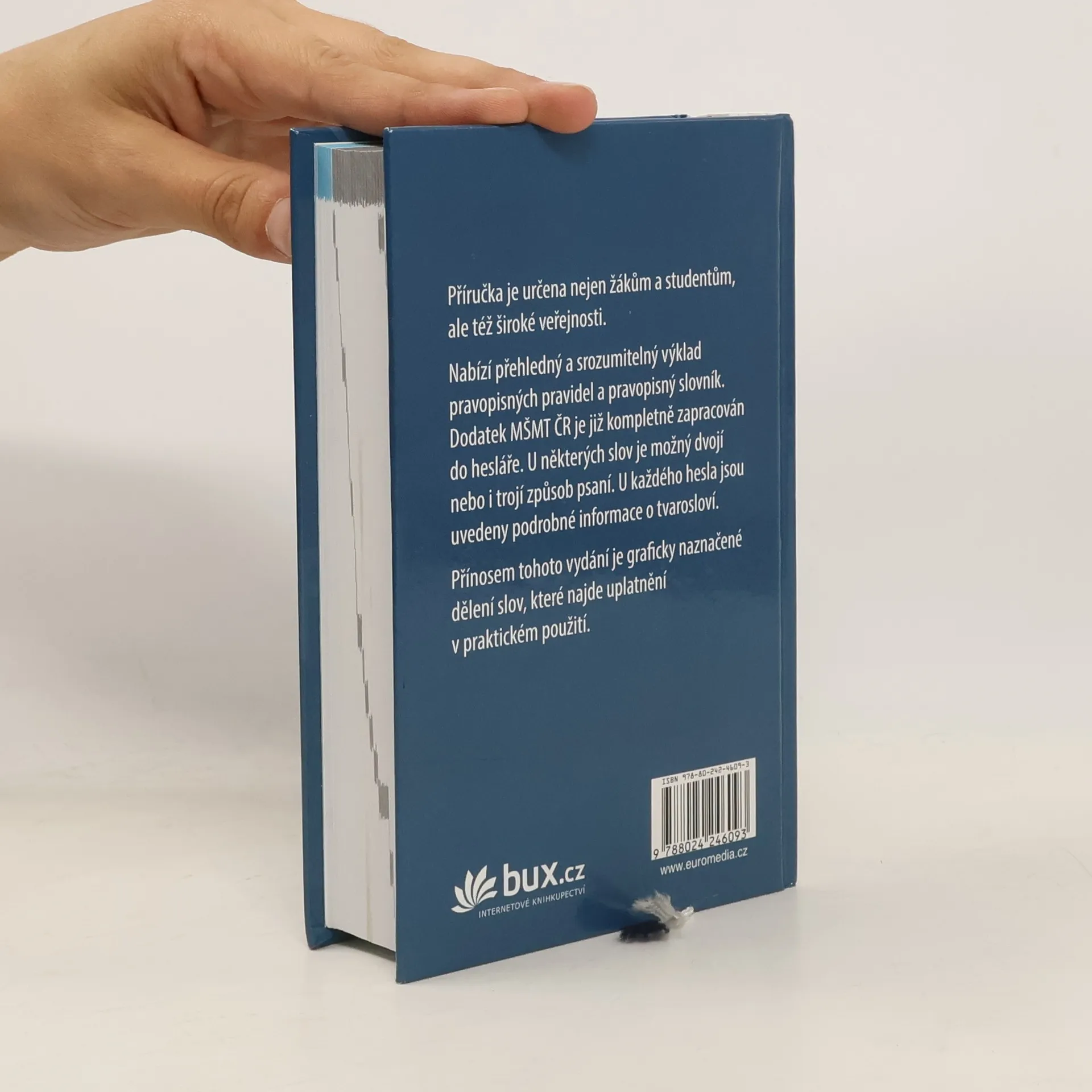 Publikace je určena nejen žákům a studentům škol, ale též široké veřejnosti. Nabízí přehledný a srozumitelný výklad pravopisných pravidel a pravopisný slovník. Dodatek MŠMT ČR je již kompletně zapracován do hesláře. U některých slov je možný dvojí nebo i trojí způsob psaní. U každého hesla jsou podrobně zpracovány informace o tvarosloví. Přínosem tohoto vydání je graficky naznačené dělení slov, které najde uplatnění v praktickém použití.