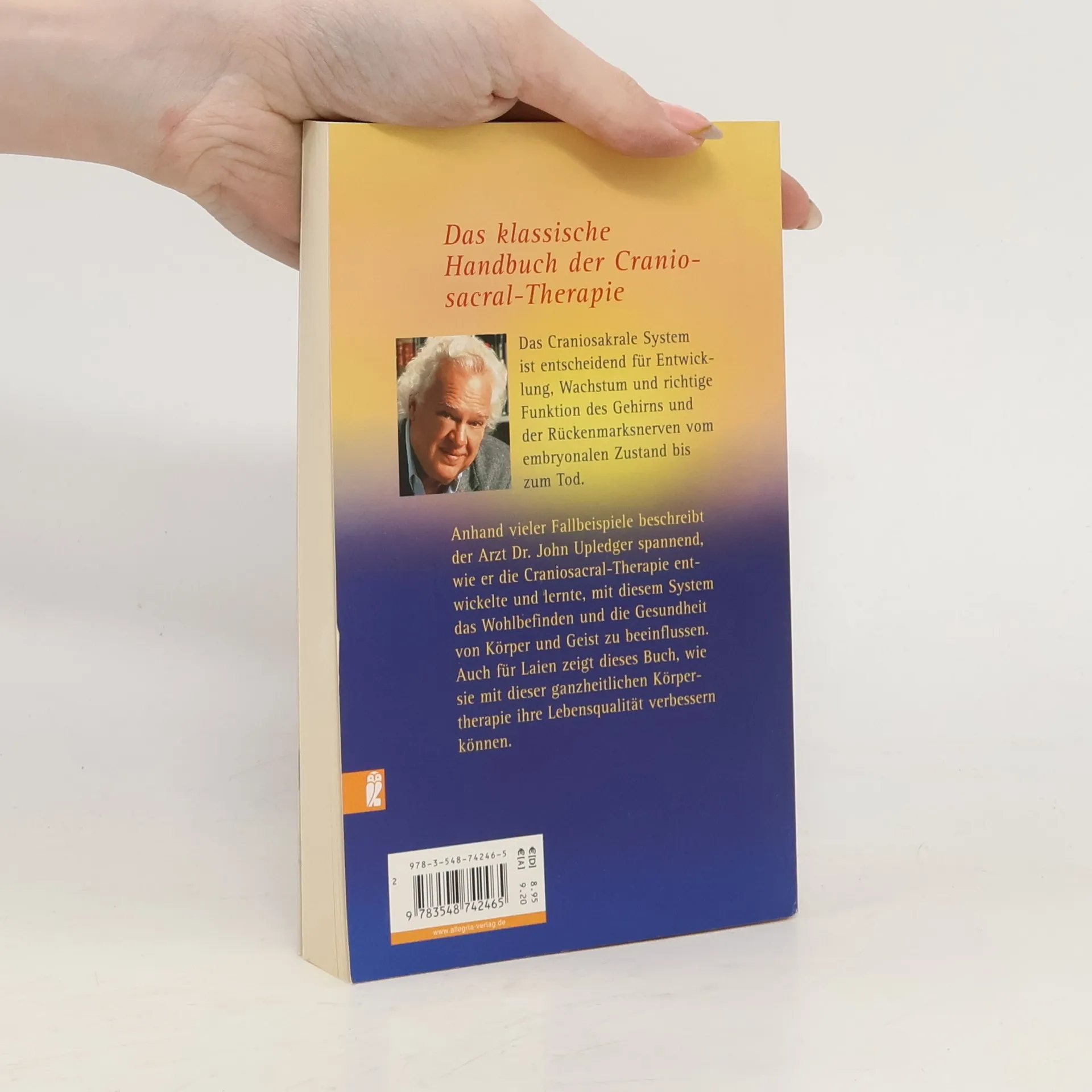 Das Craniosacrale System ist entscheidend für Entwicklung, Wachstum und richtige Funktion des Gehirns und der Rückenmarksnerven vom embryonalen Zustand bis zum Tod. Anhand vieler Fallbeispiele beschreibt der Arzt Dr. John Upledger spannend, wie er die Craniosacral-Therapie entwickelte und lernte, mit diesem System das Wohlbefinden und die Gesundheit von Körper und Geist zu beeinflussen. Auch für Laien zeigt dieses Buch, wie sie mit dieser ganzheitlichen Körpertherapie ihre Lebensqualität verbessern können.