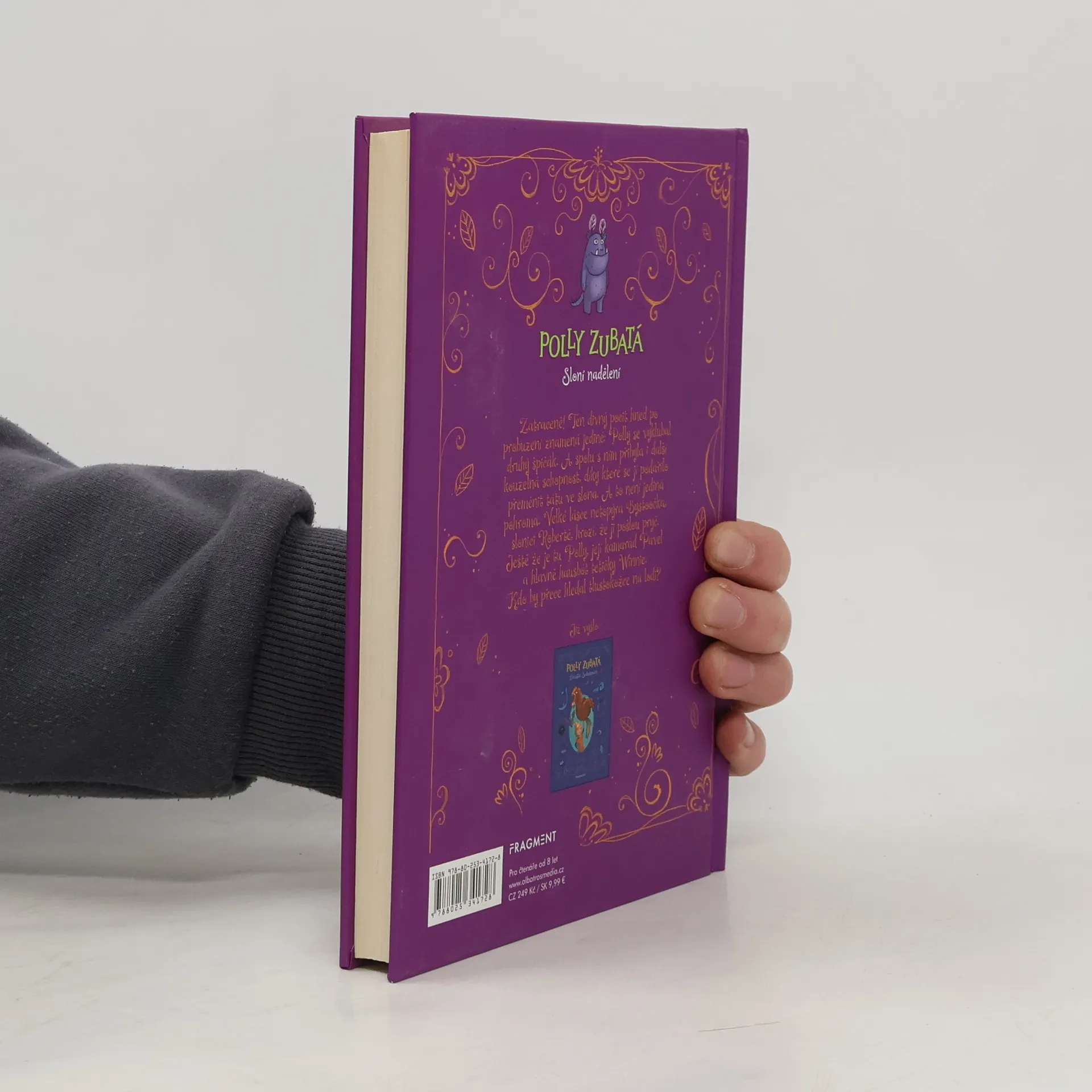 Zatraceně! Ten divný pocit hned po probuzení znamená jediné: Polly se vyklubal druhý špičák. A spolu s ním přibyla i další kouzelná schopnost, díky které se jí podařilo přeměnit tátu ve slona. A to není jediná pohroma. Velké lásce netopýra Bystoočka, slonici Robertě, hrozí, že ji pošlou pryč. Ještě že je tu Polly, její kamarád Pavel a hlavně hausbót tetičky Winnie. Kdo by přece hledal tlustokožce na lodi?