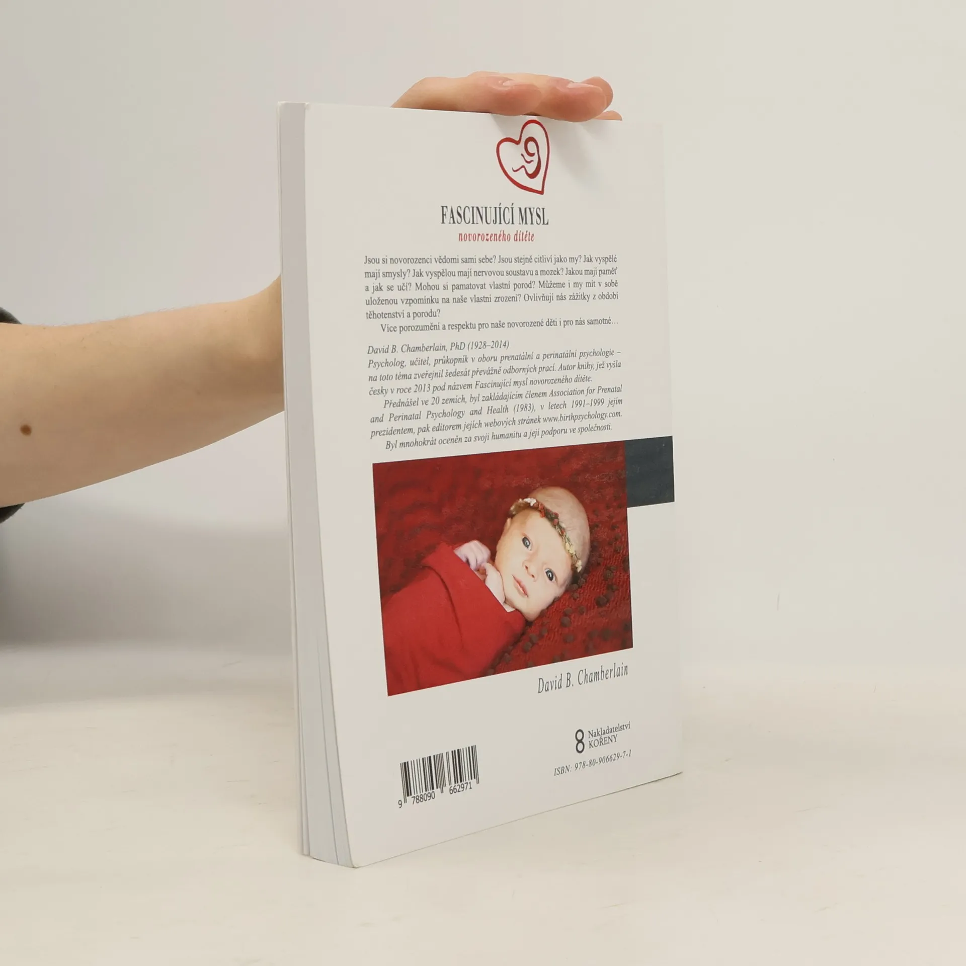 Kniha věnovaná prenatální a perinatální psychologii. Čekáte miminko a zajímá vás, jak vypadá jeho duševní život? Pak vás jistě zaujme kniha „Fascinující mysl vašeho novorozeného dítěte“ od světoznámého amerického psychologa a bývalého prezidenta Asociace pro prenatální a perinatální psychologii Davida Chamberlaina. Jsou si novorozenci vědomi sami sebe? Jsou stejně citliví jako my? Jak vyspělé mají smysly? Jak vyspělou mají nervovou soustavu a mozek? Jakou mají paměť a jak se učí? Mohou si zapamatovat vlastní porod? Máme snad i my v sobě uloženou vzpomínku na naše vlastní zrození? Ovlivňují nás zážitky z období těhotenství a porodu? Proč je třeba, abychom jako rodiče u jako společnost našli mnohem více porozumění a respektu pro naše novorozené děti, i pro nás samotné? Kniha je určena především všem aktivním rodičům, ale i profesionálům ze souvisejících profesí (porodním asistentkám, dulám, pediatrům, psychologům, gynekologům…).