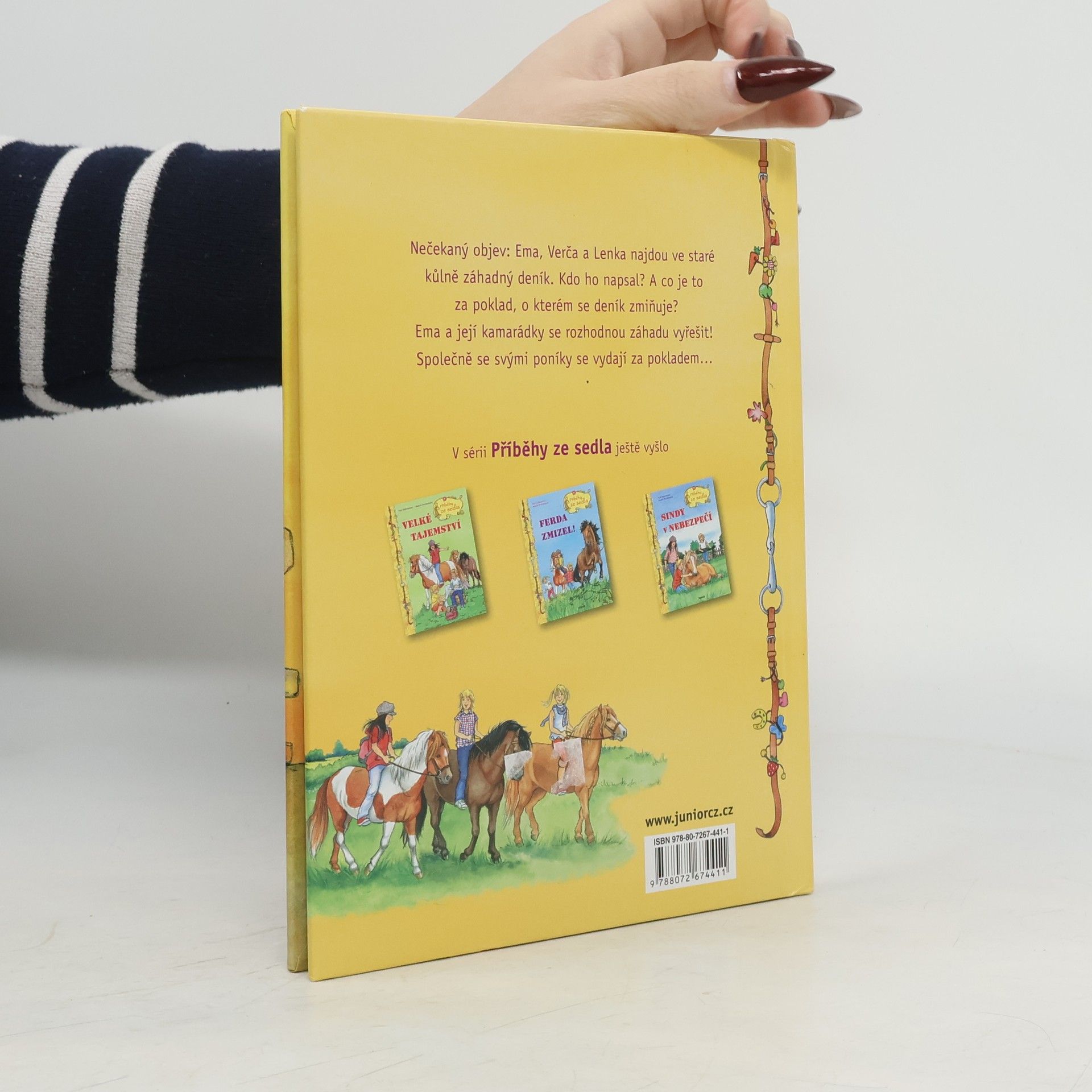 V sérii Příběhy ze sedla vychází povídání o třech holkách a jejich zvířecích kamarádech. Ema, Verča a Lenka najdou ve staré kůlně záhadný deník. Kdo ho napsal? A co je to za poklad, o kterém se deník zmiňuje? Ema a její kamarádky se rozhodnou záhadu vyřešit! Společně se svými poníky se vydají za pokladem…