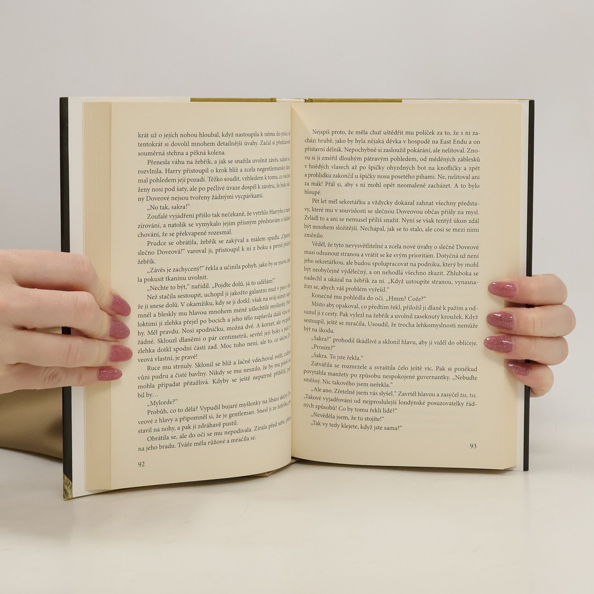 Ve ctnostných dámách někdy dřímá více vášně, než by se znalec žen domníval… Emmalina Doveová je mladá půvabná dáma, která se může pyšnit všemi ctnostmi. Tajně si hýčká velký sen: vydat vlastní knihu o etiketě. Napsala jich už několik a všechny předložila k posouzení vikomtu Marloweovi, který vlastní největší londýnské nakladatelství. Jako jeho oddaná sekretářka chová velké naděje… ovšem jen do chvíle, kdy zjistí, že ten prolhaný darebák odmítal její knihy, aniž z nich přečetl jedinou stránku! Harry jakožto zkušený nakladatel a znalec žen pokládá knihy o etiketě za vrchol nudy. Kromě toho nevěří, že by jeho spořádaná sekretářka dokázala napsat knihu, která by stála za přečtení. Je sice spolehlivá, ale nemá jiskru. I on se ovšem přepočítá - jednoho dne zjistí, že nevýrazná šedivka Emma odešla beze slova vysvětlení z práce a dokonce si dovolila začít psát do novin. Jak si něco takového vůbec mohla dovolit? Na něco takového není miláček žen Harry zvyklý, a tak se rozhodne uštědřit Emmě lekci. Hodlá slečnu Doveovou naučit pár věcí, které jsou etiketě na hony vzdálené. Když ji ale políbí, ke svému úžasu zjistí, že jeho bývalá sekretářka v sobě skrývá více vášně, než by se nadál. A Emma si uvědomí, že si z touhy po spořádanosti nechala spoustu nádherných věcí proklouznout mezi prsty. Nyní je rozhodnuta dohnat, oč přišla - i když při tom bude muset hodit za hlavu všechny své ctnosti, na něž byla tolik pyšná.