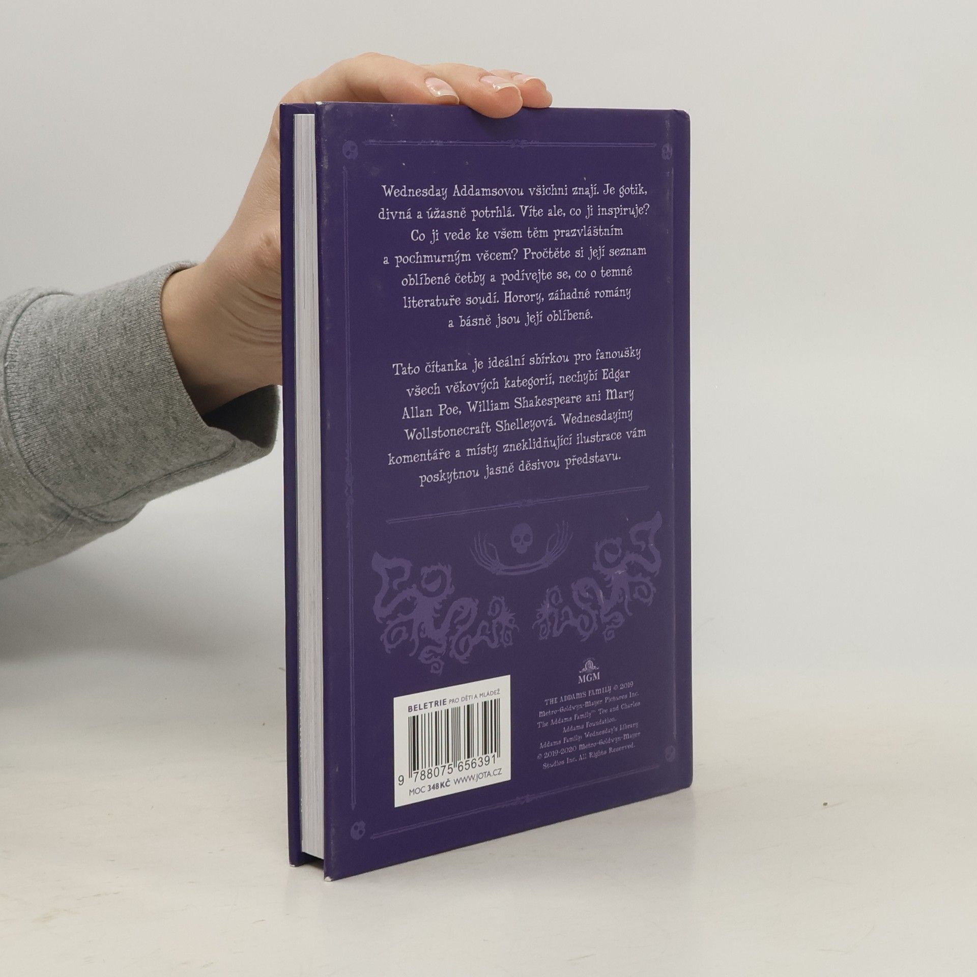 Čítanka Wednesday Addamsové představuje nezbytnou příručku pro každého gotika i fanouška Addamsovy rodiny. Upozorňuje na nejdůležitější romány, básně, divadelní hry a filmy v žánru gotiky za posledních pět století. Těžko by se našel někdo, kdo by nikdy neslyšel o Draculovi nebo Bídnících, ale zasvěcené komentáře Wednesday Addamsové pomohou ukázat, že například i zdánlivě nudná učebnicová „klasika“ v podobě románů sester Brontëových má své kouzlo – temné kouzlo. A co teprve Srdce temnoty, Šarlatové písmeno nebo Otrantský zámek! Nikdy jste o nich neslyšeli? Čítanka Wednesday Addamsové vás přesvědčí, že tajuplný svět nadpřirozena v rozličných podobách, které je nutné znát, prosakuje na povrch celé zeměkoule. Temná klasika, kterou možná nezná ani vaše učitelka češtiny, je zdrojem inspirace a klíčem k pochopení jednání výstředně zasmušilé Wednesday Addamsové a její rodiny.