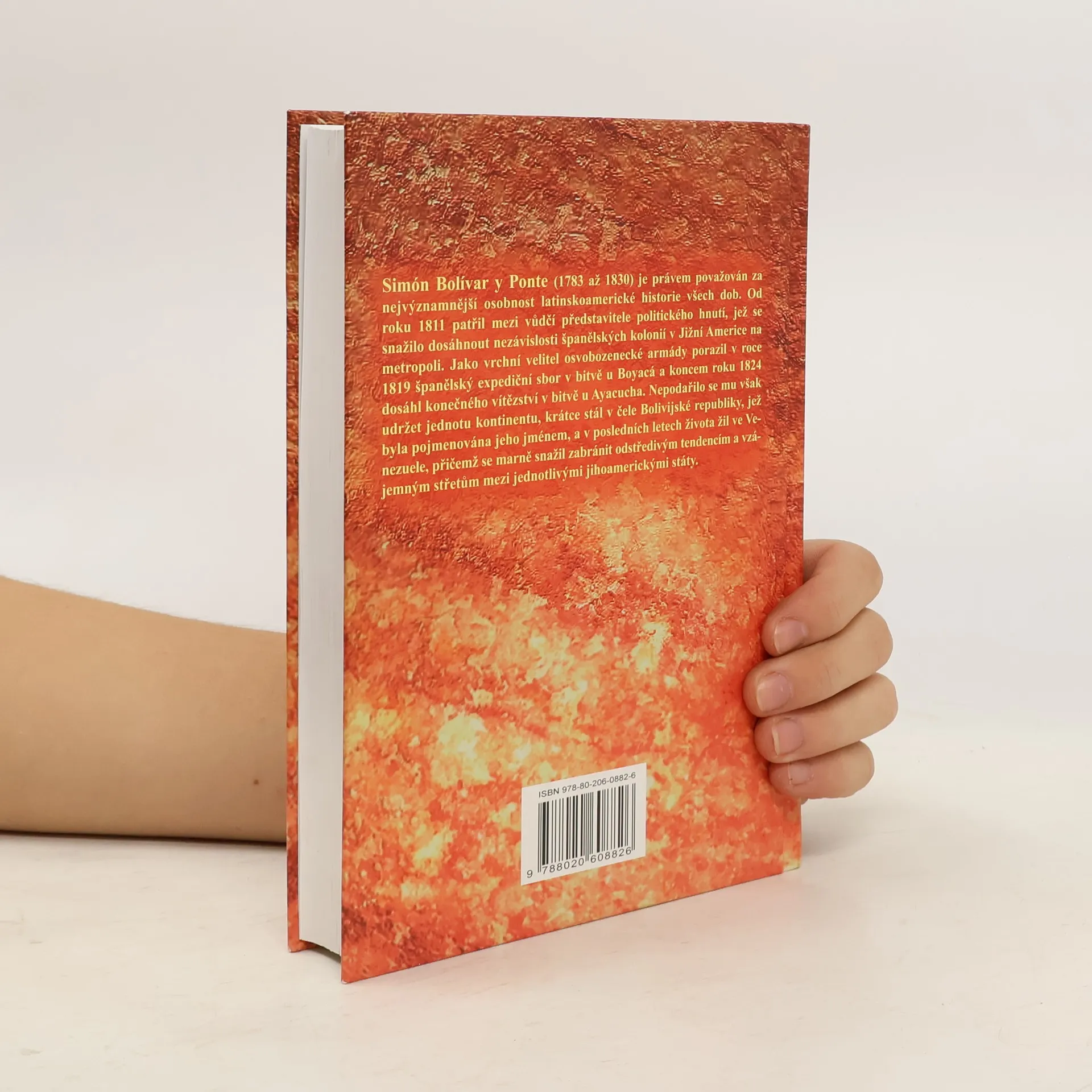 Simón Bolívar y Ponte (1783 až 1830) je právem považován za nejvýznamnější osobnost latinskoamerické historie všech dob. Od roku 1811 patřil mezi vůdčí představitele politického hnutí, jež se snažilo dosáhnout nezávislosti španělských kolonií v Jižní Americe na metropoli. Jako vrchní velitel osvobozenecké armády porazil v roce 1819 španělský expediční sbor v bitvě u Boyacá a koncem roku 1824 dosáhl konečného vítězství bitvě u Ayacucha. Nepodařilo se mu však udržet jednotu kontinentu, krátce stál v čele Bolivijské republiky, jež byla pojmenována jeho jménem, a v posledních létech života žil ve Venezuele, přičemž se marně snažil zabránit odstředivým tendencím a vzájemným střetům mezi jednotlivými jihoamerickými státy.