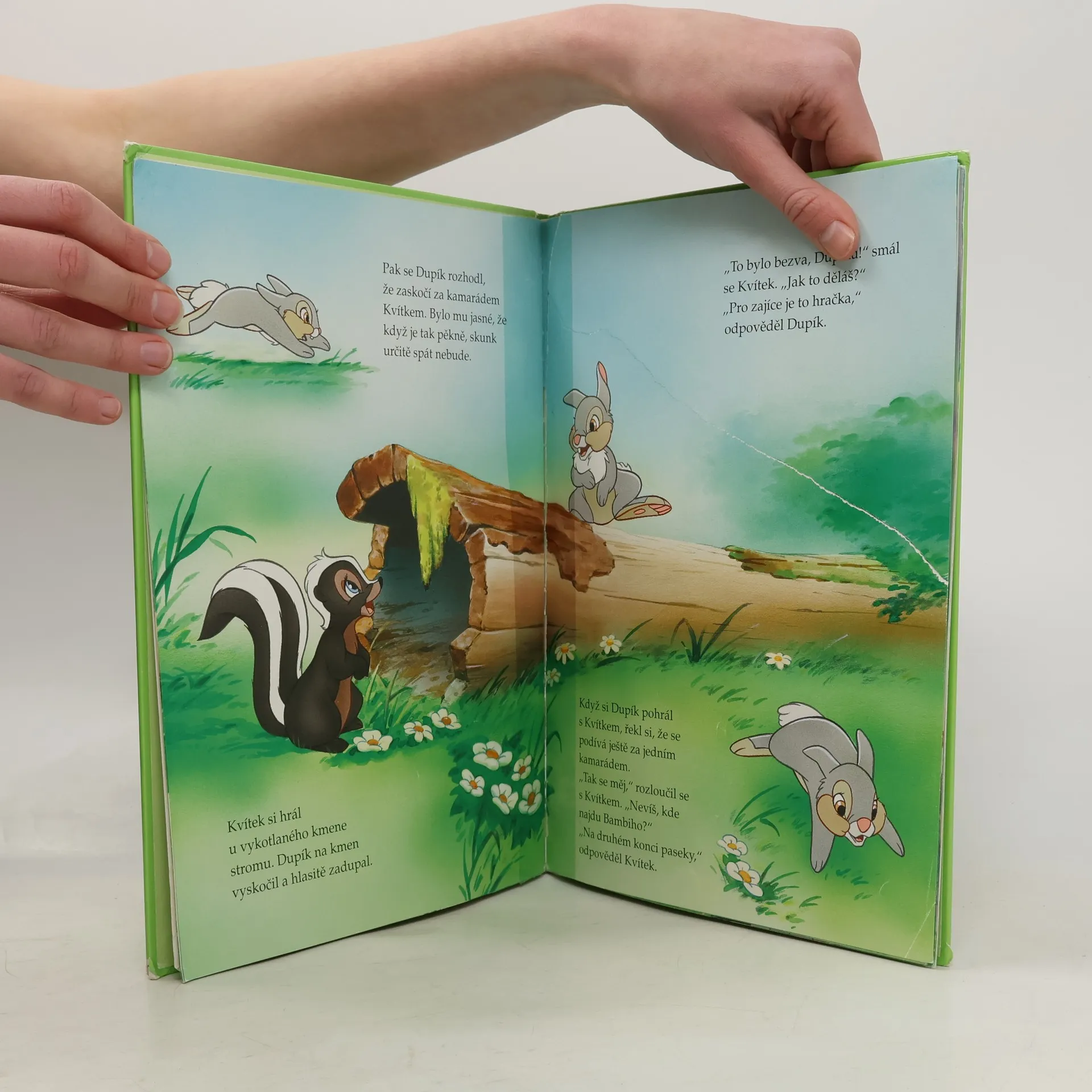 Zajíček Dupík je pěkný neposeda. Jak může, uteče mamince a běhá po lese se svými kamarády Kvítkem a Bambim. Nejraději ze všeho však skáče a dupe. Jednou se takhle předváděl před motýlem, až přeslechl blížící se požár. Nezalekl se a místo, aby utekl, běžel varovat své kamarády. Všechna zvířátka se tak dostala do bezpečí, jenom Dupíka vyhlížela maminka marně…