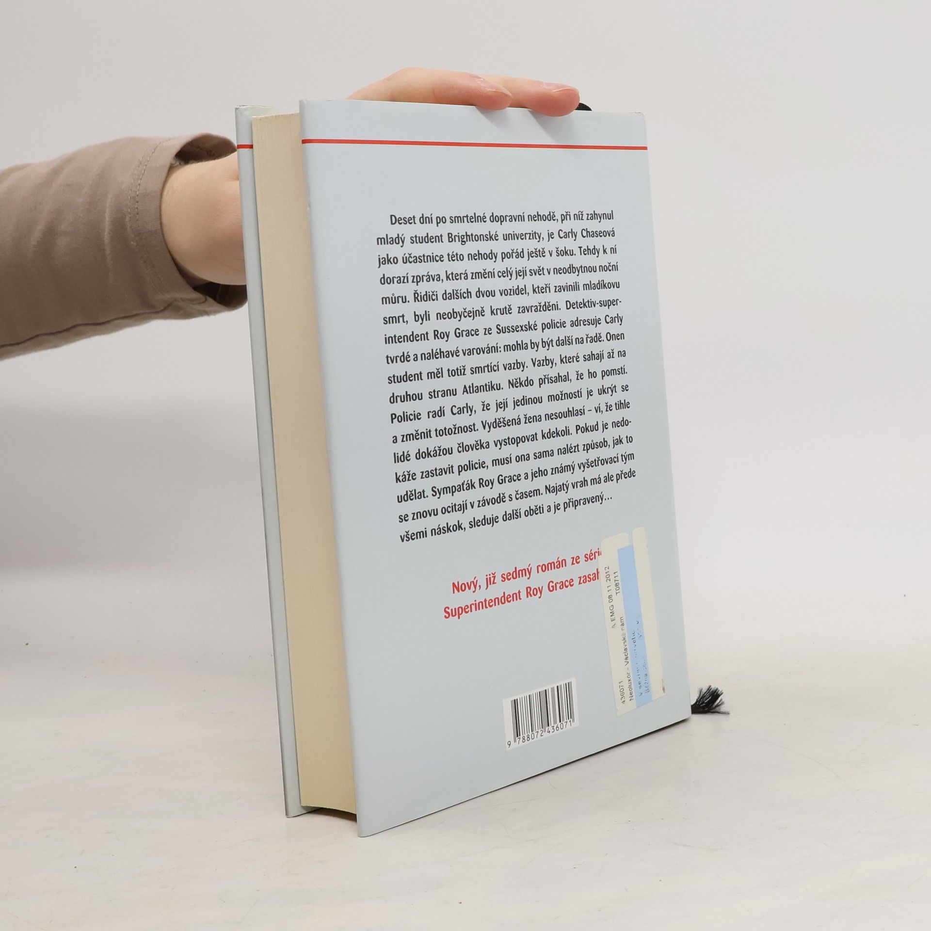 Jedna chyba Dvě vraždy Žádné výčitky svědomí Nový, již sedmý román ze série Superintendent Roy Grace zasahuje. Deset dní po smrtelné dopravní nehodě, při níž zahynul mladý student z Brightonské univerzity, je Carly Chaseová pořád ještě v šoku. Tehdy k ní dorazí zpráva, která změní celý její svět v živoucí noční můru. Řidiči ostatních dvou vozidel, kteří byli do nehody zapleteni, byli nalezeni zmučení a zavraždění. Detektiv-superintendent Roy Grace ze sussexské policie adresuje Carly tvrdé a naléhavé varování: mohla by být další na řadě. Onen student měl smrtící vazby. Vazby, které sahají až na druhou stranu Atlantiku. Někdo přísahal, že ho pomstí, a nepřestane, dokud i poslední osoba zapletená do této smrtelné nehody nebude mrtvá. Policie radí Carly, že její jedinou možností je ukrýt se a změnit totožnost. Vyděšená žena nesouhlasí - ví, že tihle lidé dokážou člověka vystopovat kdekoli. Pokud je nedovede zastavit policie, musí ona sama nalézt způsob, jak to udělat. Vrah je ustavičně o krok před ní, sleduje ji, čeká a je připravený… Roy Grace se znovu ocitá v závodě s časem - musí zastavit vraha, který touží po pomstě.