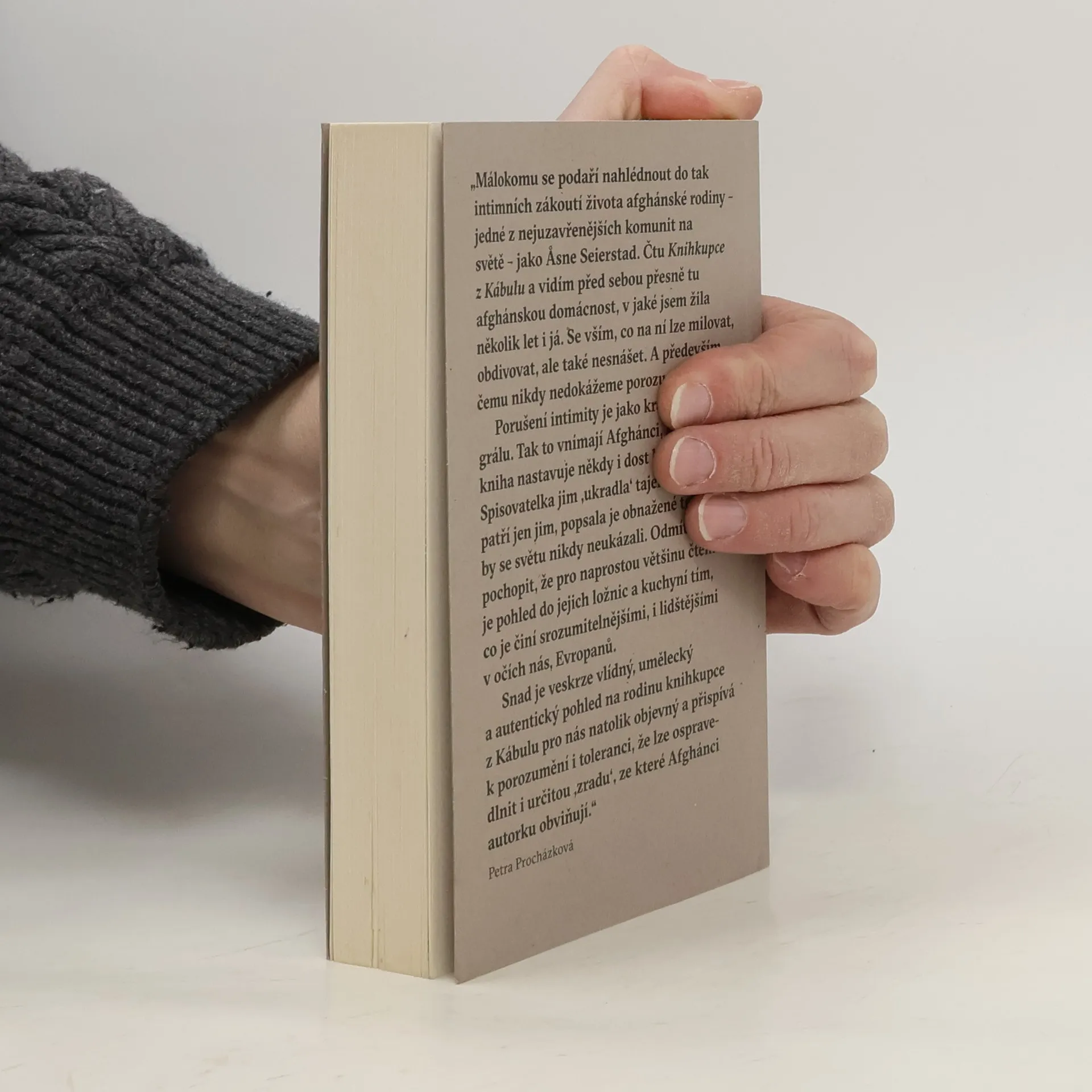 11. září 2001 – tohle datum změnilo náš pohled na Afghánistán. Krátce po americké vojenské odvetě přijela do Kábulu také válečná reportérka Åsne Seierstad. Nenapsala knihu o boji s terorismem, ale o jedné afghánské rodině. Sultán Chán, knihkupec z Kábulu, ji nechal zblízka pozorovat život v jeho domácnosti. Vztahy mezi první a druhou ženou, dcerami a syny i dalšími příbuznými. Sultán chápe svou práci jako životní misi – chce Afghánce vzdělávat a nechávat svobodně zaznít všechny názory. Doma ale platí jen jeho slovo. Rozhoduje o celé rodině. Kdo si koho může vzít, s kým se smí stýkat, kde a zda vůbec může pracovat. Nemá rád burky, ale ženy s vlastním rozumem také ne. „Čtu Knihkupce z Kábulu a vidím před sebou přesně tu afghánskou domácnost, v jaké jsem žila několik let i já. Se vším, co na ní lze milovat, obdivovat, ale i nesnášet,“ napsala Petra Procházková. Åsne Seierstad pronikla do afghánské každodennosti tak hluboko, jak se to nepodařilo snad žádné ženě „ze Západu“.