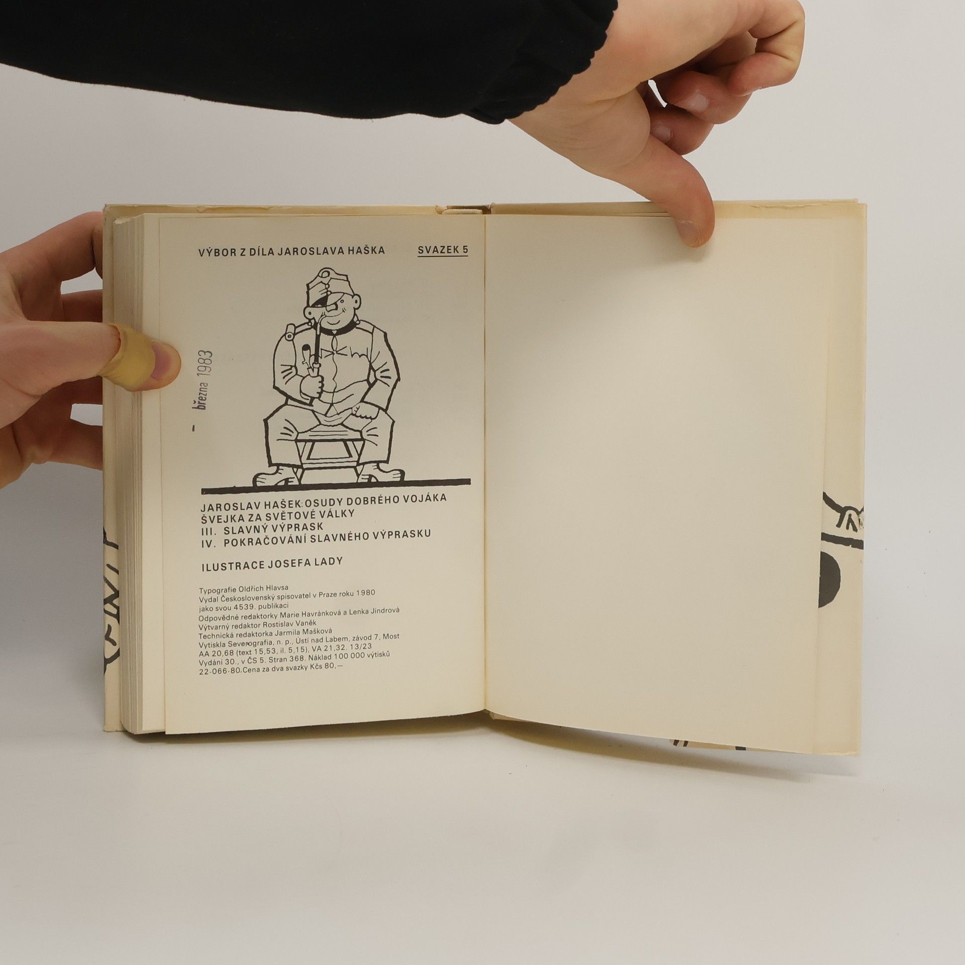 Dobrý voják Švejk je jedna z nejznámějších a nejoblíbenějších postav nejen české, ale i světové literatury. Svědčí o tom spolu s četnými vydáními doma a v zahraničí také skutečnost, že se z díla stala v pravém slova smyslu klasika, která se neustále čte a cituje. Možná bychom mohli mluvit i o součásti naší národní povahy, ať už v dobrém nebo pejorativním smyslu. Švejk, hostinský Palivec, polní kurát Katz, nadporučík Lukáš, sapér Vodička, Baloun a další postavičky nadále žijí svým životem. 22-066-80