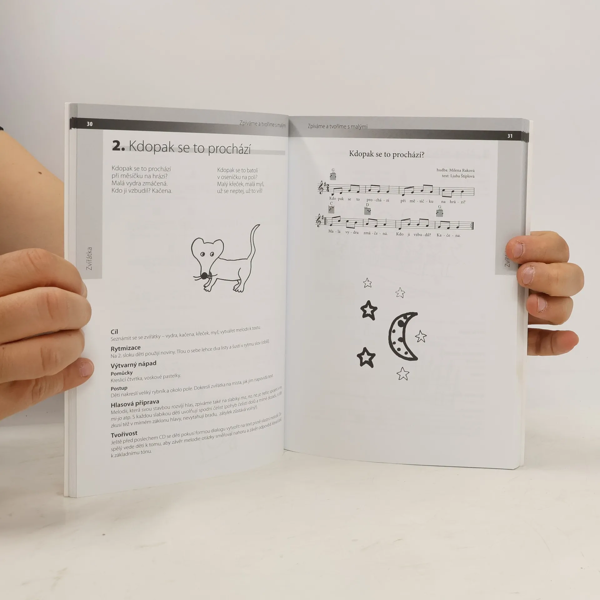 Publikace je určena pro děti od 5 do 10 let. Obsahuje písničky a metodické rozpracování jednotlivých činností, ke kterým vybízejí text a melodie písní. Metodické pokyny jsou zaměřeny na hlasový rozvoj dítěte, podpoření rytmického cítění a instrumentálních dovedností, na vnímání nálady, tempa hudby a jejich pohybového vyjádření. Jsou zde i náměty k výtvarným činnostem a tvořivým hrám s hudbou a slovem.
