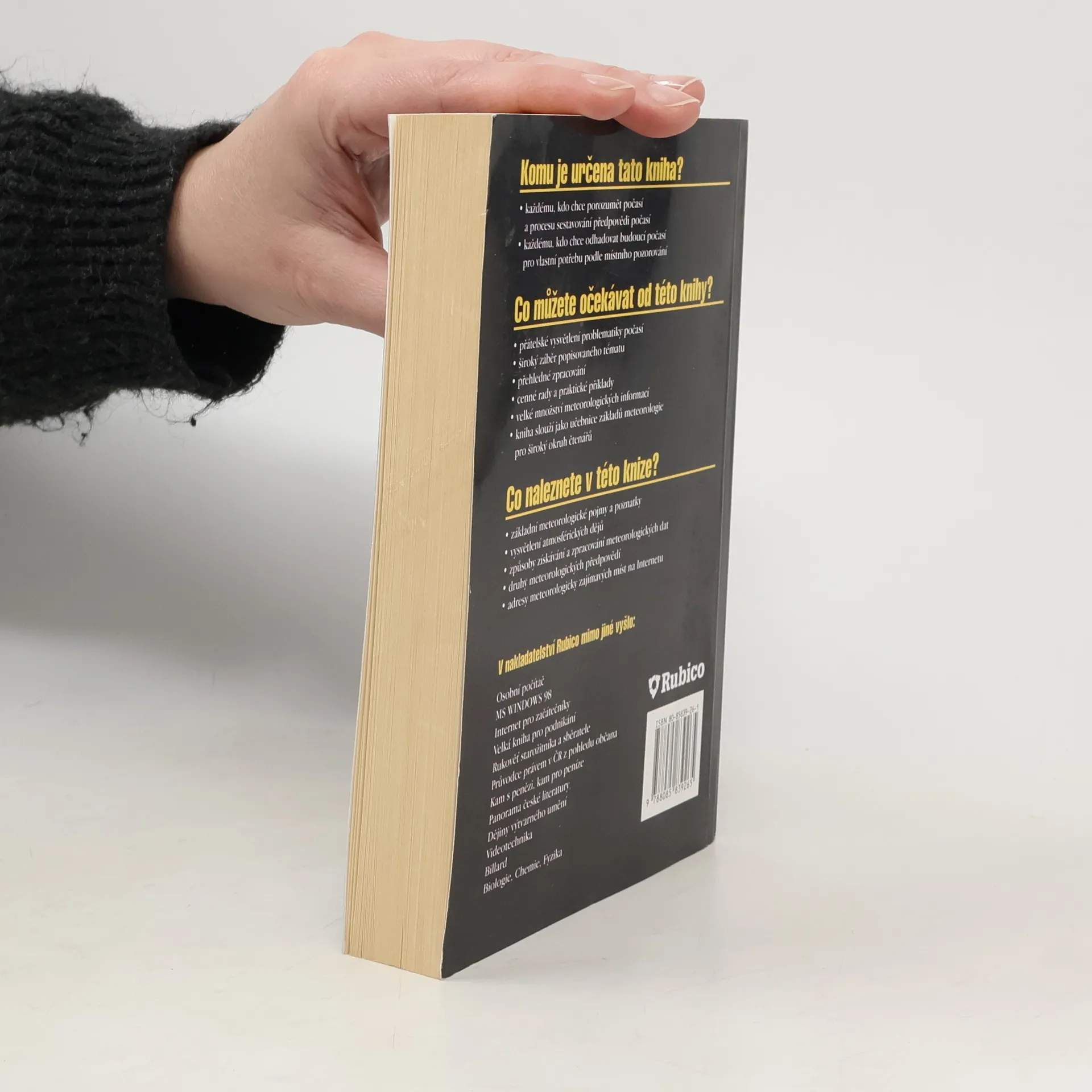 V knize najdeme vysvětlení základních meteorologických pojmů, atmosférických dějů, způsoby získávání a zpracování meteorologických dat, druhy meteorologických předpovědí a adresy meteorologicky zajímavých míst na Internetu.
