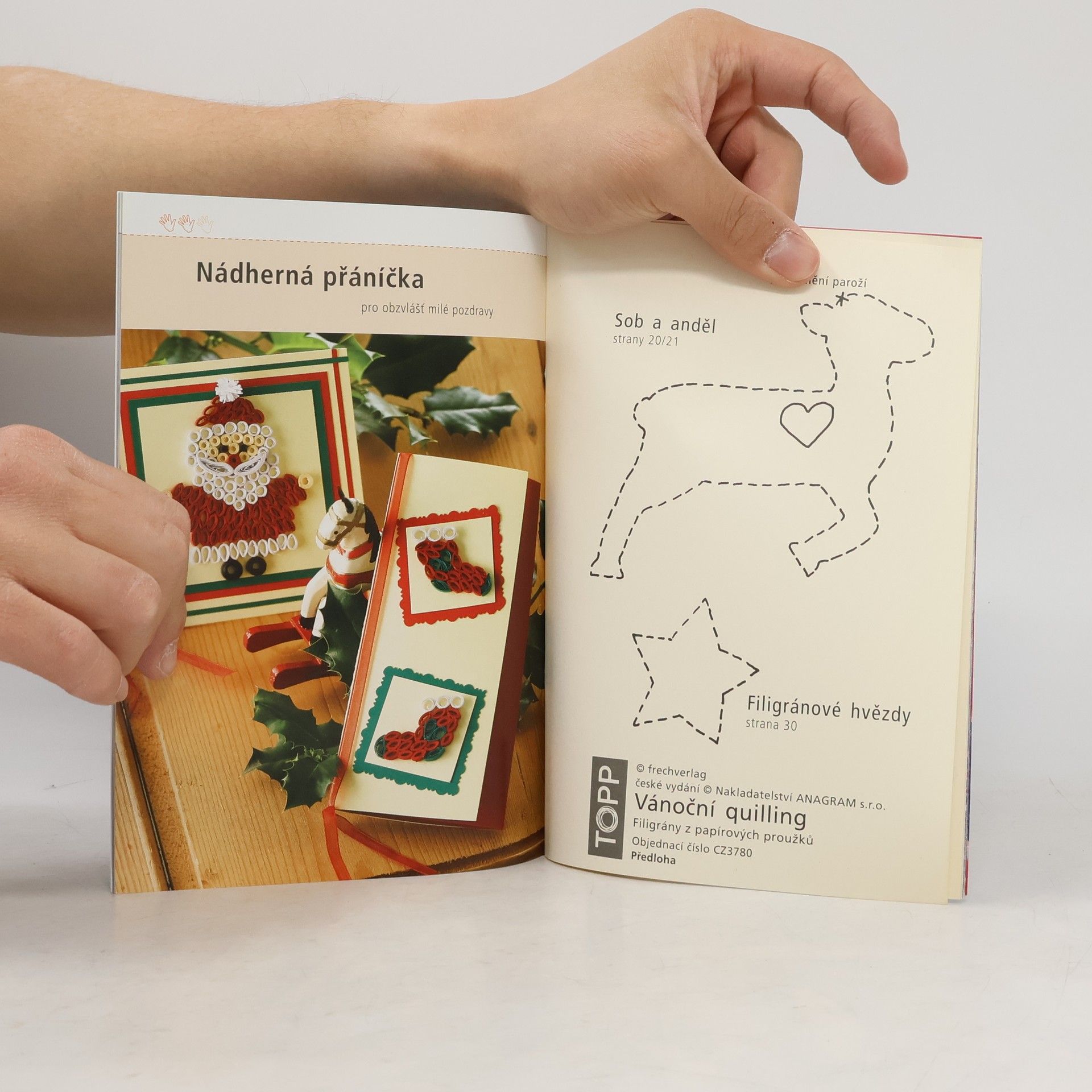 Quilling je umění, jak vytvořit pomocí stáčení z úzkých papírových proužků filigránové motivy. Z několika základních tvarů vzniknou nádherná přáníčka, přívěsky na dárky, vánoční ozdoby, dekorace stolu, obrázky a mnoho dalších motivů pro vánoční čas. Kořeny quillingu, zhotovení jemných papírových filigránů pomocí brka (angl. quill), leží již několik století zpět. Původně byly zhotovovány z připravených zlatých pergamenových proužků papírové filigrány, které měly imitovat drahocenné zdobení oltáře. Velice populárním se namotávání papírových proužků stalo v 18. století u mladých moderních dam ze společnosti. Bylo zkrátka in vytvářet z úzkých papírových proužků jemné dekorace. Tento trend se pak dále šířil z Anglie a Francie rychle do Ameriky, kde se quilling dokonce vyučoval ve škole. Poté upadl tento smyslný koníček až do pozdního 20. století téměř do zapomenutí. Mezitím se těší quilling opět velké oblibě. Právem, jen z několika málo základních tvarů vzniknou kouzelné dekorace.Přesné popisy vám stáčení a namotávání techniku quillingu usnadní. Přejeme vám hodně radosti při zhotovování vánočních dekorací a dárků pomocí techniky quilling.