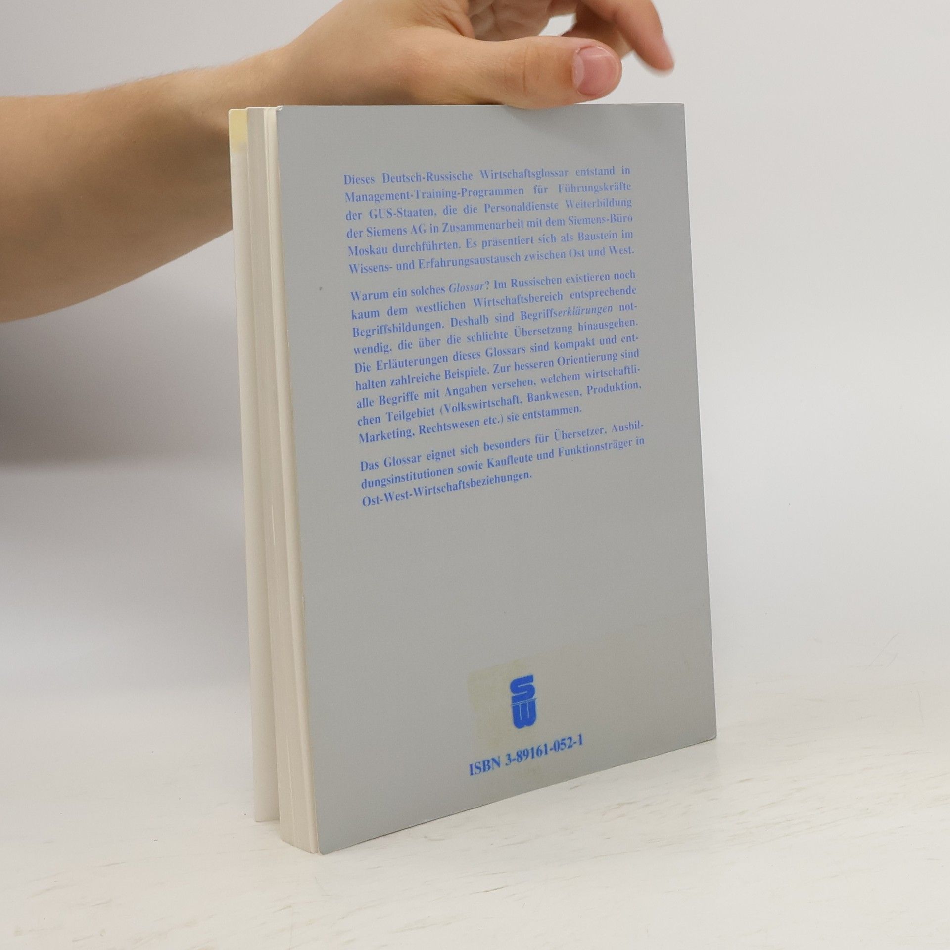Warum ein solches Glossar? Im Russischen existieren noch kaum dem westlichen Wirtschaftsbereich entsprechende Begriffsbildungen. Deshalb sind Begriffserklärungen notwendig, die über die schlichte Übersetzung hinausgehen. Die Erläuterungen des Glossars sind kompakt und enthalten zahlreiche Beispiele. Zur besseren Orientierung sind alle Begriffe mit Angaben versehen, welchem wirtschaftlichen Teilgebiet (Volkswirtschaft, Bankwesen, Marketing, Rechtswesen etc.) sie entstammen. Das Deutsch-Russische Wirtschaftsglossar entstand in Management-Training-Programmen für Führungskräfte der GUS-Staaten, die die Personaldienste Weiterbildung der Siemens AG in Zusammenarbeit mit dem Siemens-Büro Moskau durchführten. Es präsentiert sich als Baustein im Wissens- und Erfahrungsaustausch zwischen Ost und West.