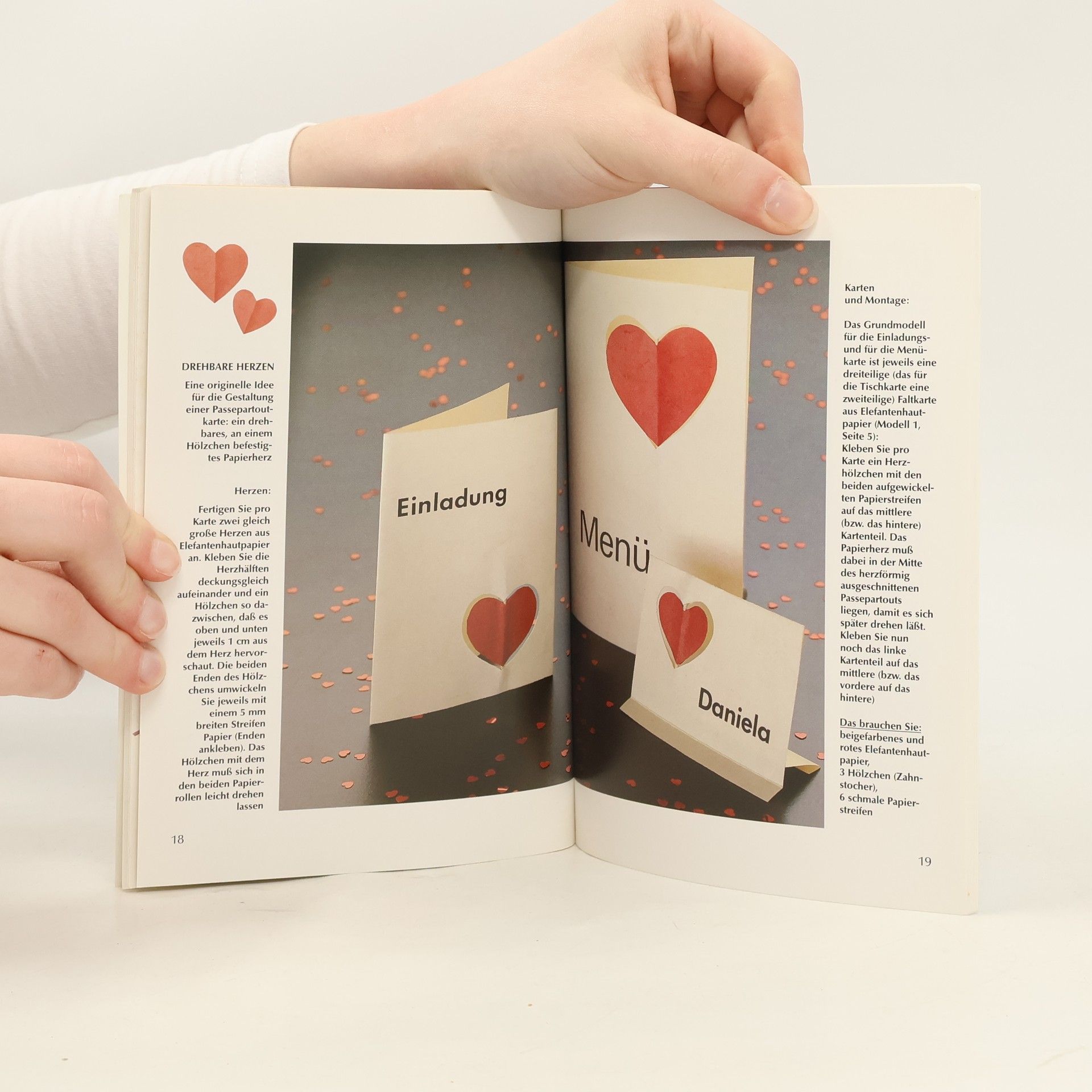 Bietet Anleitungen zur Gestaltung von Kartensets, wobei die Grundmodelle (u.a. Passepartout, Faltschnitt, Kartenrollen) jeweils z.B. mit Blumen, Tüll oder Collagen dekoriert werden; reich illustriert.