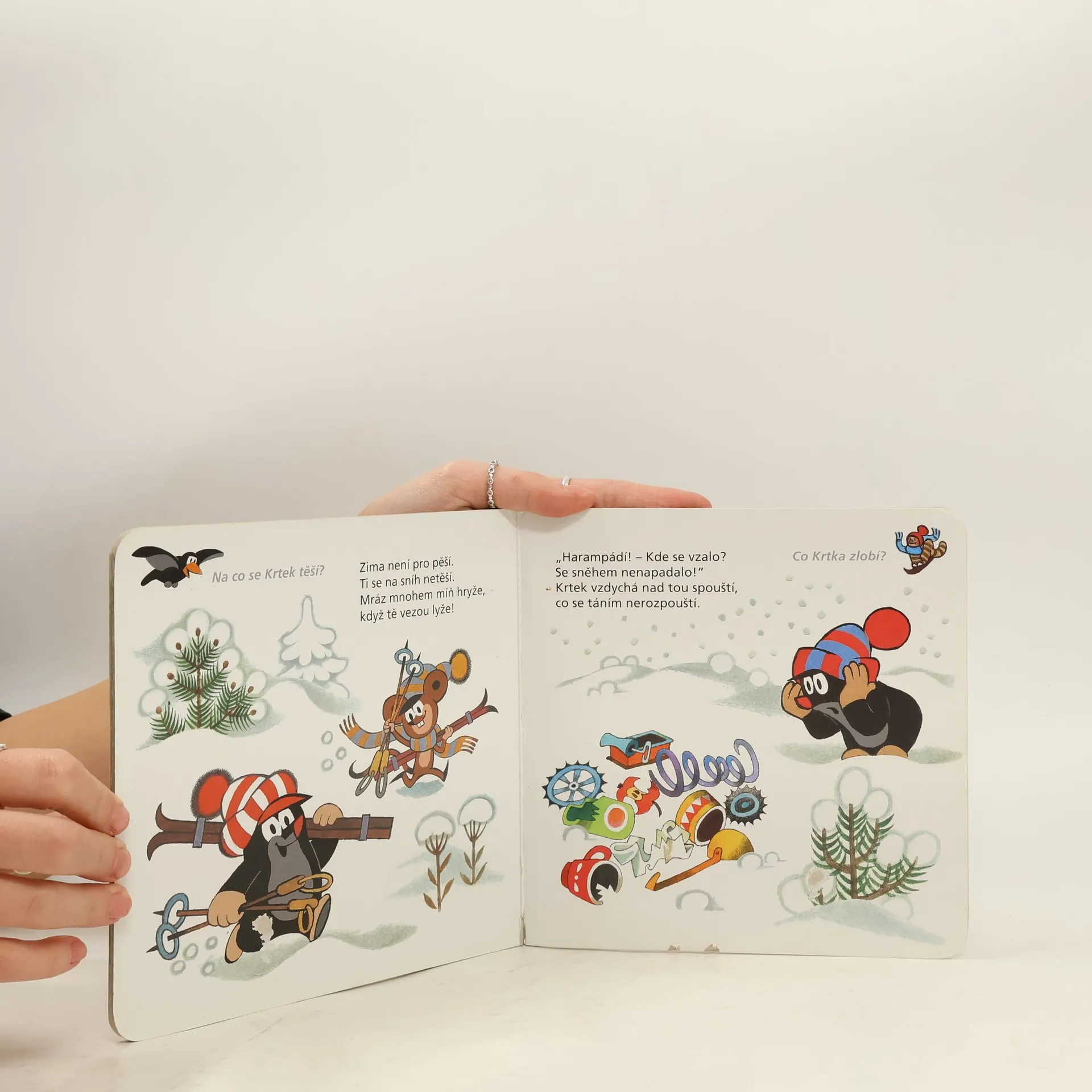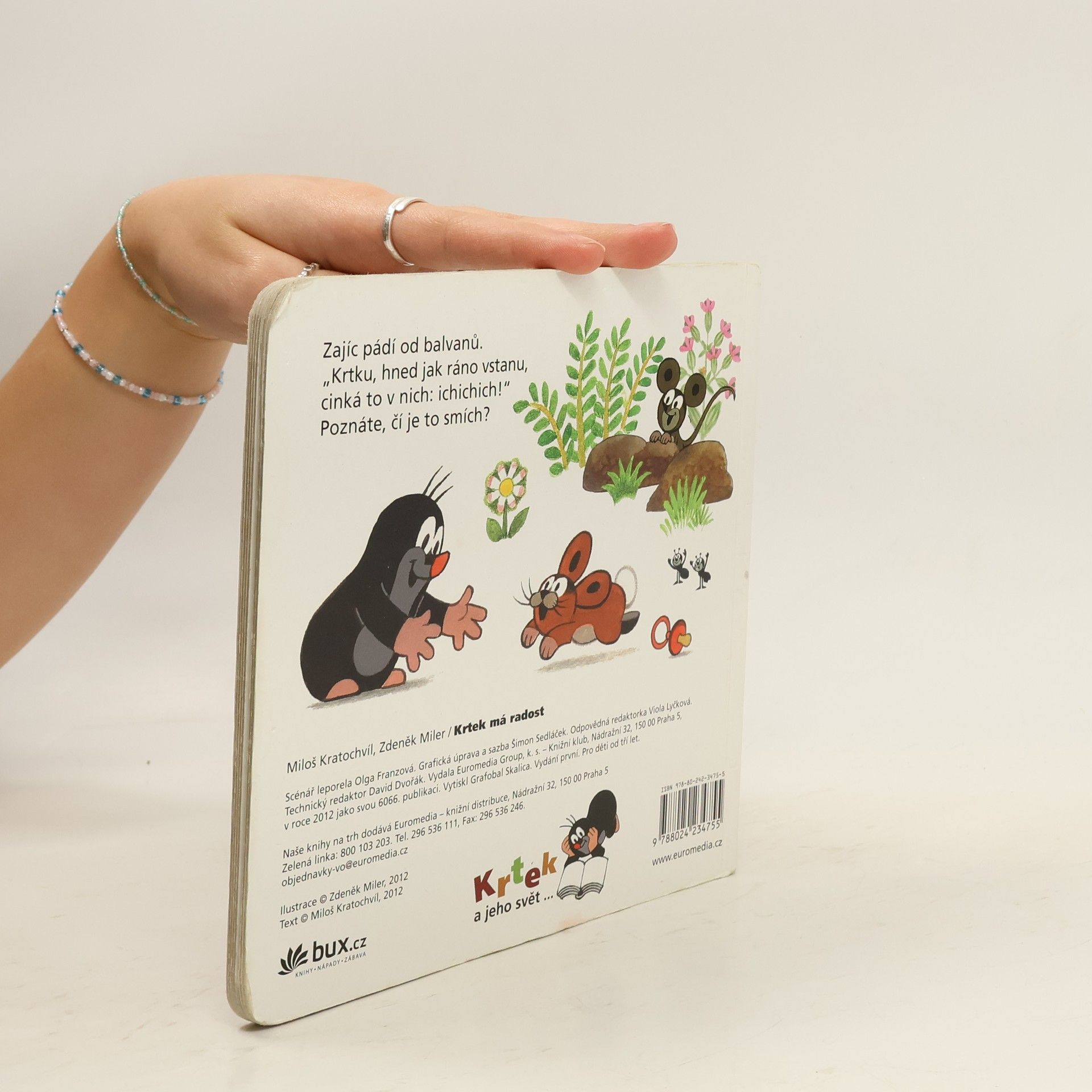 Desátý z řady příběhů pro nejmenší čtenáře o tom, co všechno umí neposedný krteček a jeho zvířecí kamarádi, je zaměřen na základní pocity, se kterými se děti setkávají v kontaktu s vrstevníky i se světem dospělých. I hodného Krtka spousta věcí dokáže potěšit, rozzlobit, rozesmutnit, vyděsit, a někdy je potřeba někomu i vyčinit! Doplněno návodnými otázkami.