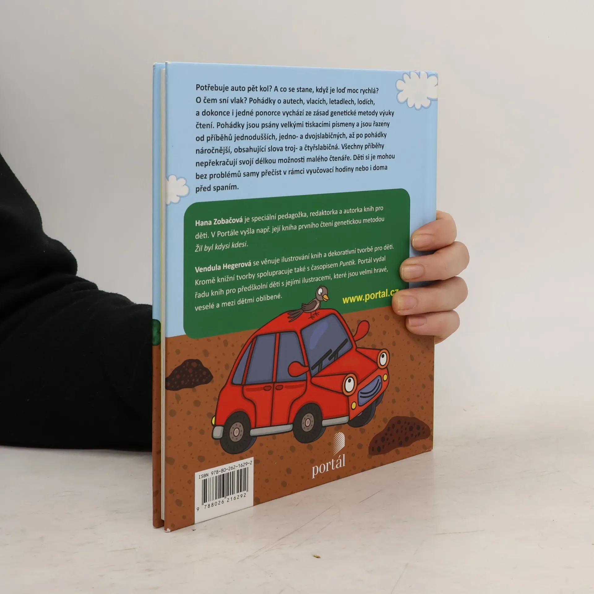 Potřebuje auto pět kol? A co se stane, když je loď moc rychlá? O čem sní vlak? Pohádky o autech, vlacích, letadlech, lodích a dokonce i jedné ponorce vychází ze zásad genetické metody výuky čtení. Pohádky jsou psány velkými tiskacími písmeny a jsou řazeny od příběhů jednodušších, jedno a dvojslabičných, až po pohádky náročnější, obsahující slova troj- a čtyřslabičná. Všechny příběhy nepřekračují svojí délkou možnosti malého čtenáře. Děti si je mohou bez problémů samy přečíst v rámci vyučovací hodiny nebo i doma před spaním.