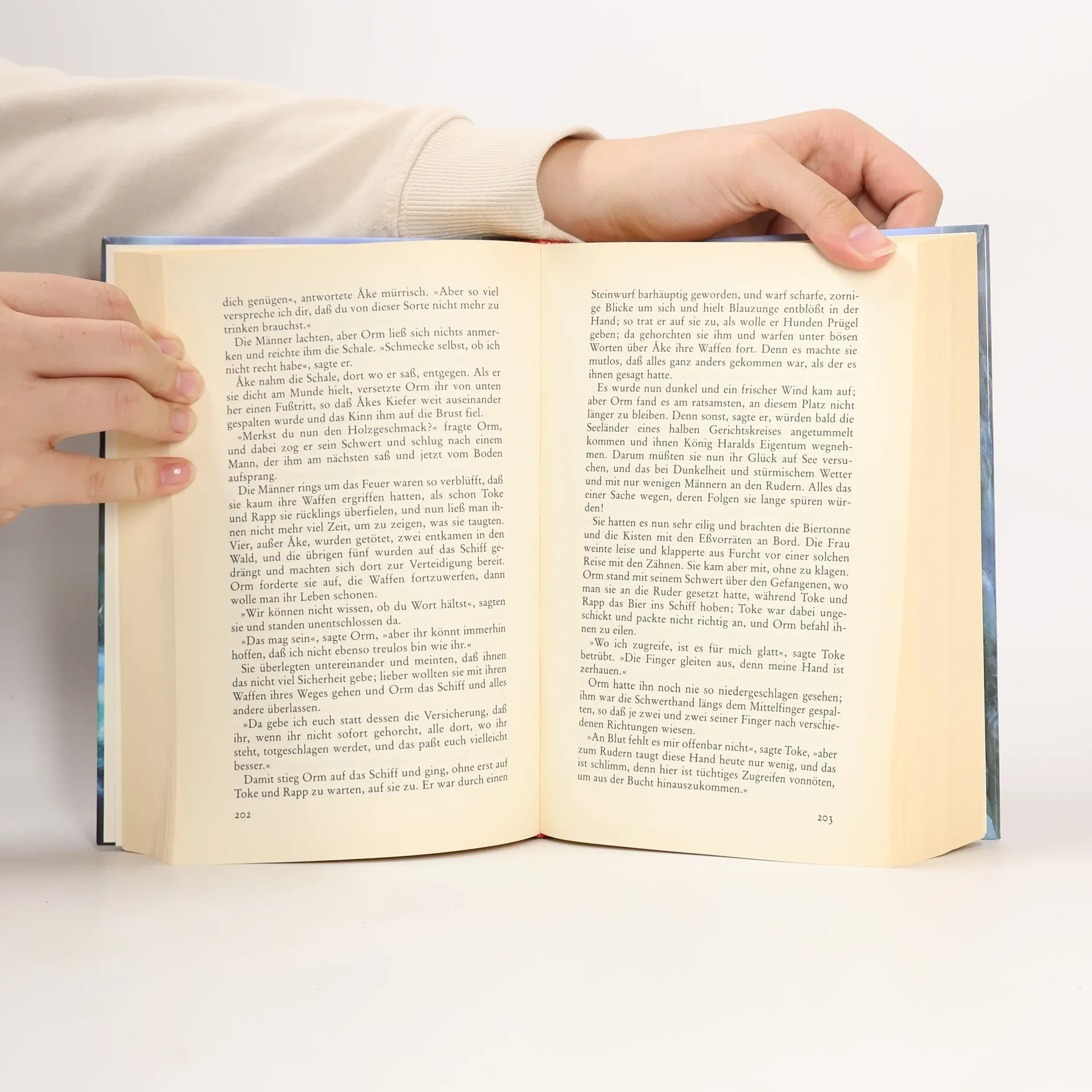 Wie eine nordische Saga beginnt und endet, höchst stilvoll, diese Wikingergeschichte. Was dazwischen liegt, ist aber alles andere als feierlich, sondern spannend und vergnüglich zu lesen. Mit Speeren, Äxten und Menschenleben geht man allerdings sorglos um, Hauptsache, die eß-, trink- und liebesfreudigen Helden haben ihren Spaß! Die Geschichte beginnt so: Orm, Mutters Jüngster, verzärtelt und hypochondrisch, wird von plündernden Nachbar-Wikingern verschleppt. Das Schiff, auf dem die Nordmänner zu ihrem alljährlichen Raubzug gen Spanien fahren, kapern die Mauren. Leider sehen sich die Wikinger eines Tages genötigt, einen ihrer maurischen Widersacher zu erschlagen, und müssen deshalb - nicht ohne Hinterlassung aufrichtiger Entschuldigungen an den Kalifen von Cordova - fliehen.