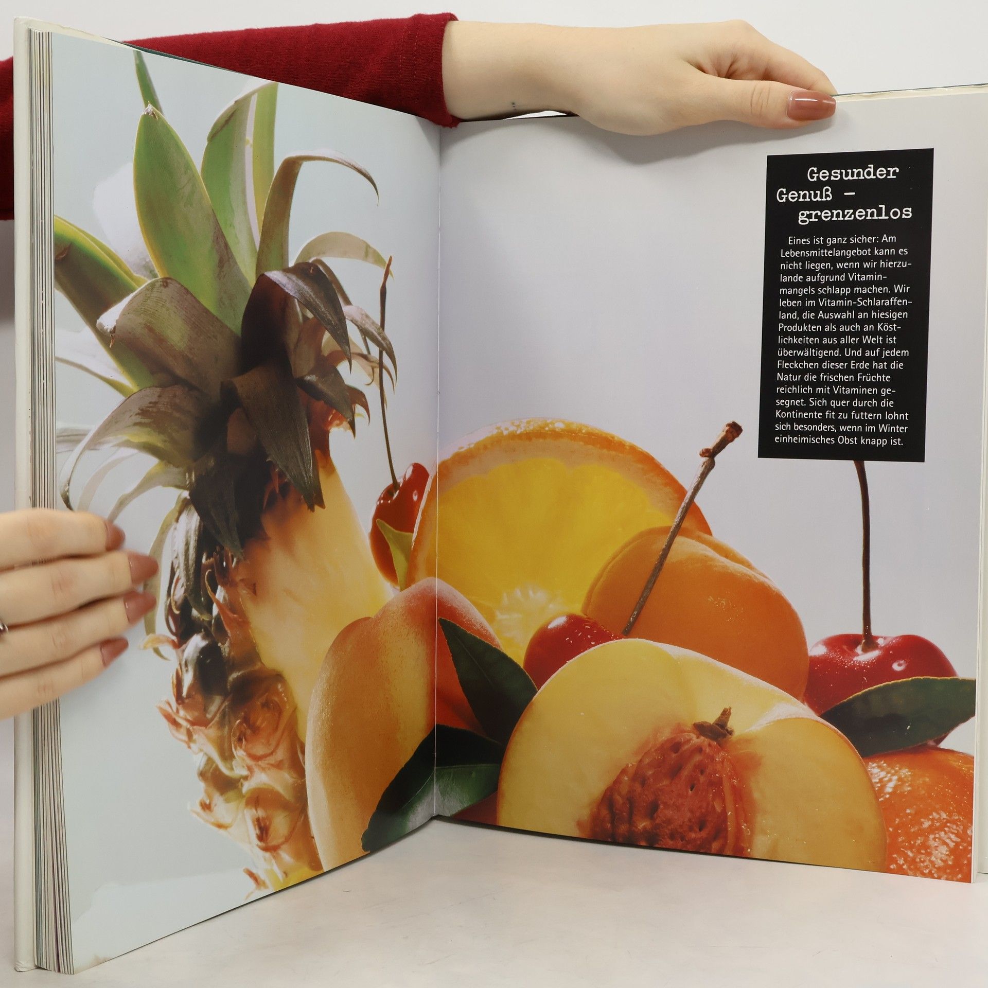 Wer "viel" Buch, im Format 32 x 25 cm, schön und übersichtlich gestaltet, mag, mit vielen herrlichen Photos, und seinen Horizont gern über Bilddarstellungen erweitert, liegt hier richtig. Dieses Werk -brandneu- enthält Grundinformationen über Vitamine, Ernährung, Fitness und Entspannung bis hin zur Frage, was Liebe und Sex mit Ernährung zu tun haben. Neben den fünfzig wichtigsten Fragen und Antworten und einem Lexikon der Fachausdrücke gibt es die besten Vitaminrezepte, eine Marktübersicht über Vitaminprodukte un viel Ästhetik anzuschauen. Warum nicht einmal so? Lesen und durchblättern machen Spass, das Buch ist aber auch als Nachschlagewerk nützlich. Übrigens bürgen die Mitarbeiterinnen dieses Buches für beste wissenschaftliche Recherchen. Heiko Sobel (April 1996).