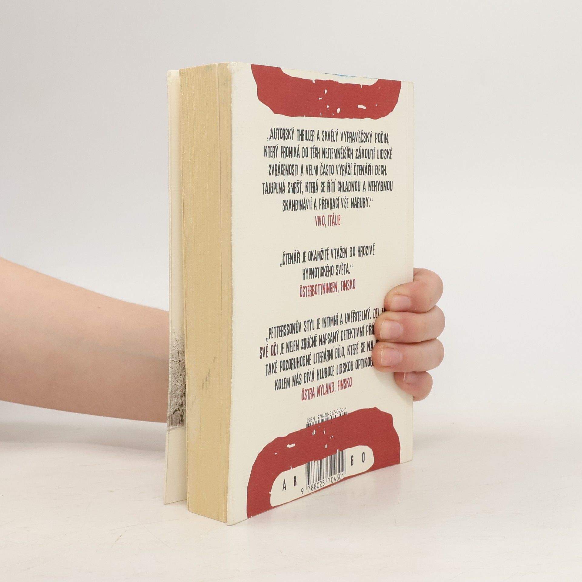 Ve švédsko-finském okrese Forshälla dojde k brutální vraždě inženýrky Gabrielly Dahlströmové, mladé inženýrky pracující v jaderné elektrárně. Případ dostane na starost inspektor Harald Lidmark. Vzápětí je veřejnost otřesena dalšími dvěma vraždami – tentokrát jsou obětmi muži. Mrtvým jsou vždy vyříznuty oči a do těla vyryto písmeno: A, M, E… Román Torstena Petterssona má neobvyklou formu – k záznamům inspektora Lindmarka se postupně připojují „hlasy“ vraha, obětí i svědků, a vytvářejí tak složitou mozaikovou strukturu -, prozkoumává též komplikované a nevyzpytatelné zákruty lidské psychiky, dotýká se choulostivé otázky bezpečnosti jaderných elektráren a ve vedlejší linii sleduje bezohledný obchod s bílým masem na rusko-finské hranici. Petterssonův román, který je ukázkou nové švédsko-finské literatury, je pozoruhodný formálně, tematicky i jazykově. Ne nadarmo je Torsten Pettersson označován za „severského Umberta Eca“.