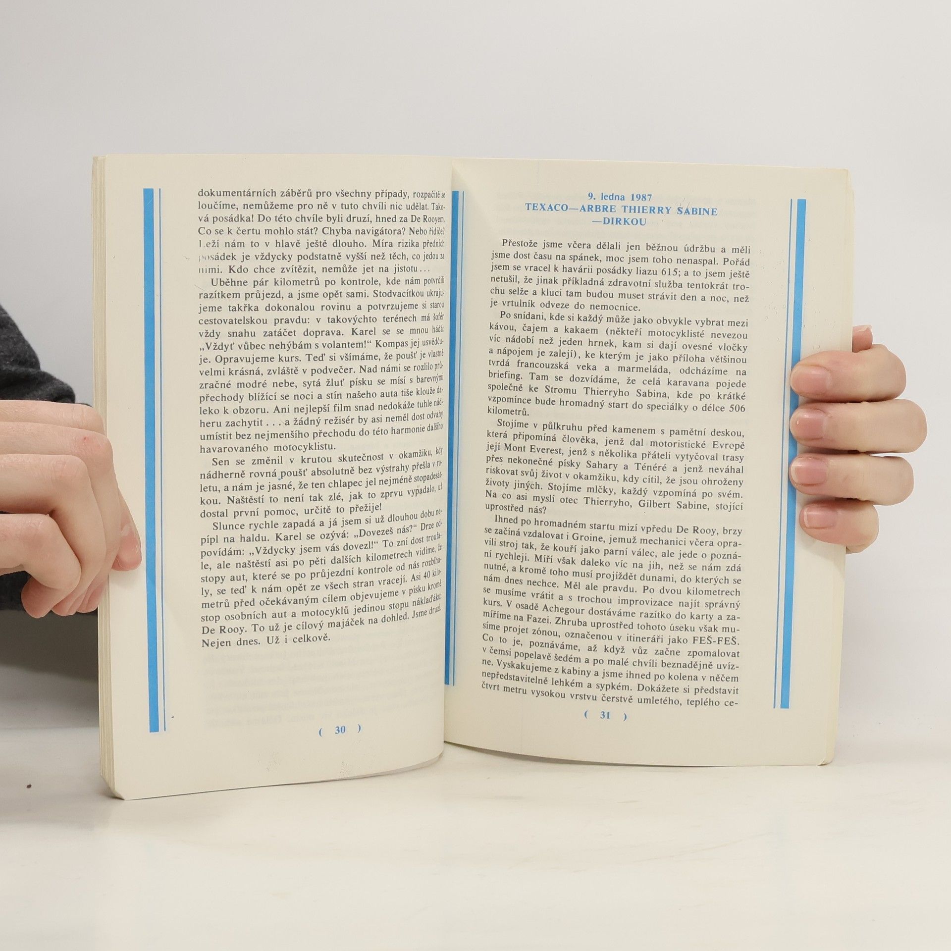 Kniha, ve které sledujeme dramatický průběh i zajímavosti ze závodů kamionů v ralley Paříž-Dakar z let 1987 a 1988 i událostí, které tomu předcházely. Vše je řazeno chronologicky den po dni tak, jak to líčí členové posádek.