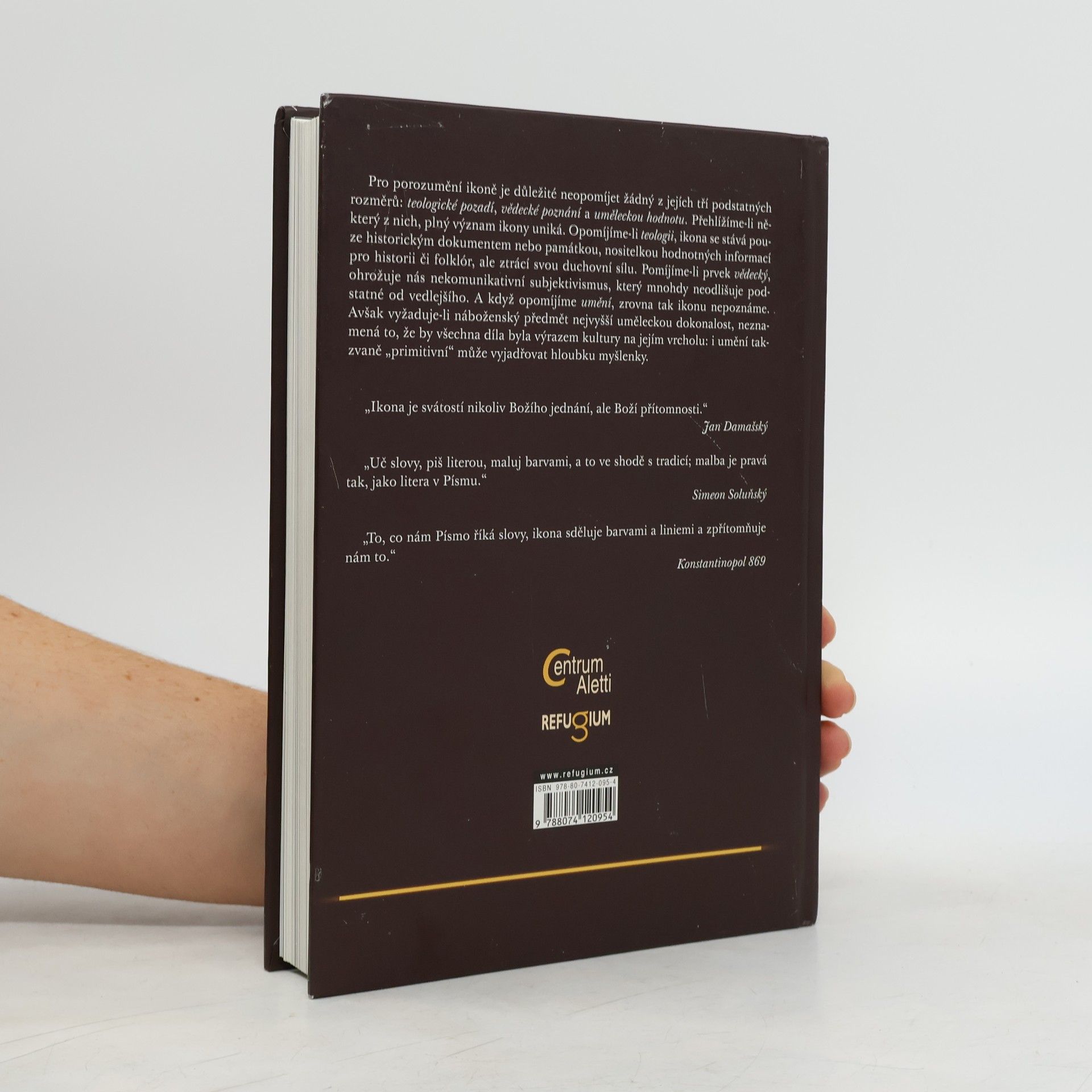 Bohatě ilustrovaná publikace proslulého znalce teologie ikon a odborníka v technice jejich malby je nezbytným pramenem jak pro uvedení do tradice křesťanských východních škol, tak syntézou pro odborníky. Podrobný a systematický přehled vzniku ikony a jejího významu předkládá autor (zakladatel ikonopisecké školy ve Francii) s hlubokým vhledem do souvislostí.