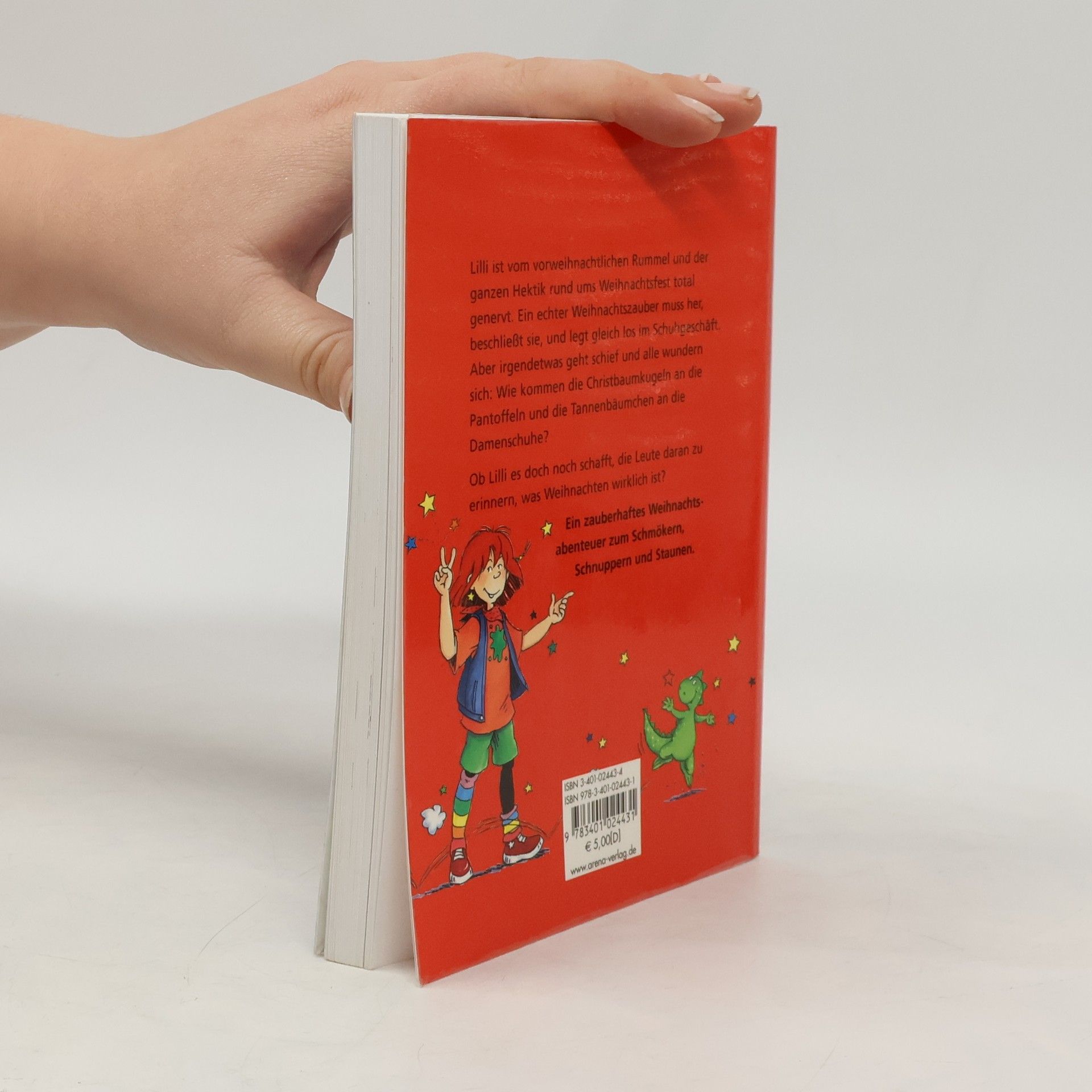 Lilli ist vom vorweihnachtlichen Rummel und der ganzen Hektik rund ums Weihnachtsfest total genervt. Ein echter Weihnachtszauber muss her, beschließt sie, und legt gleich los im Schuhgeschäft. Aber irgendetwas geht schief und alle wundern sich: Wie kommen die Christbaumkugeln an die Pantoffeln und die Tannenbäumchen an die Damenschuhe? Ob Lilli es doch noch schafft, die Leute daran zu erinnern, was Weihnachten wirklich ist? -- book back cover