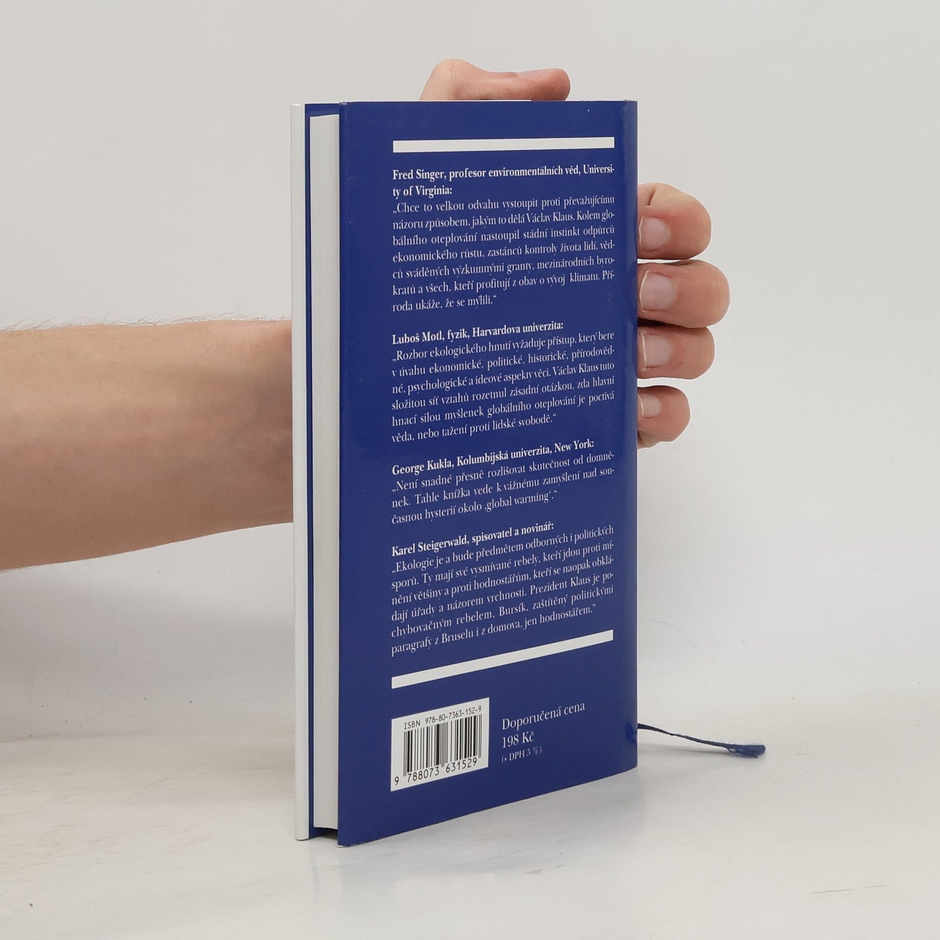 Co je ohroženo: klima, nebo svoboda? Václav Klaus v této knize veřejnosti předkládá své komplexní stanovisko k dnešní tolik zjitřené debatě o životním prostředí a zejména o tzv. globálním oteplování. Toto téma se stává zásadním ideovým a politickým střetem naší současnosti. Do jaké míry ovlivňuje klimatické změny člověk? Nakolik je možné jim zabránit nejrůznějšími omezeními a politickými zásahy? V. Klaus tvrdí, že nejlepším prostředím pro člověka je prostředí svobody, a právě tím je třeba poměřovat všechny představy a kategorické požadavky environmentalistů. Dochází k jednoznačnému závěru: ochrana přírody ano, environmentalismus ne! Text je psán živým a čtivým stylem, srozumitelným i laikovi a provází ho typický autorův humor a sarkasmus. Vydání první
