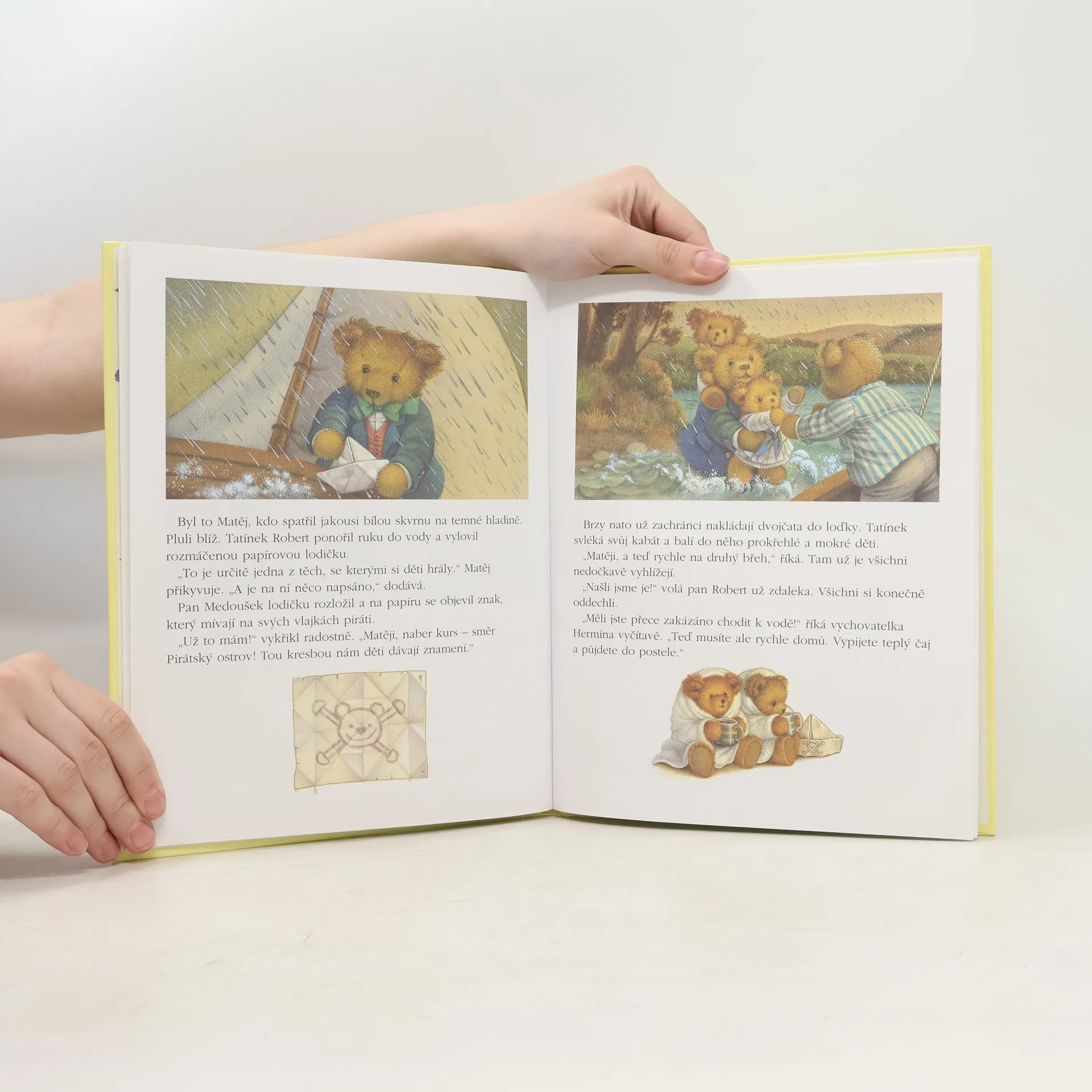 Každé léto opouští medvědí rodinka svůj městský dům na Brumlovském náměstí a prožívá prázdniny na venkovském statku pana Janoucha v Lesní Lhotě. Jejich dny jsou plné radovánek. Malým dvojčatům Báře a Edíkovi se však nechce čekat na konec závodu loděk a rozhodnou se zahrát si na piráty. Kolébání vln je nakonec uspí. Jejich loďka míří přímo k Pirátskému ostrovu! Slunce už zapadá, zvedá se vítr a nikdo netuší, kde mohou být...