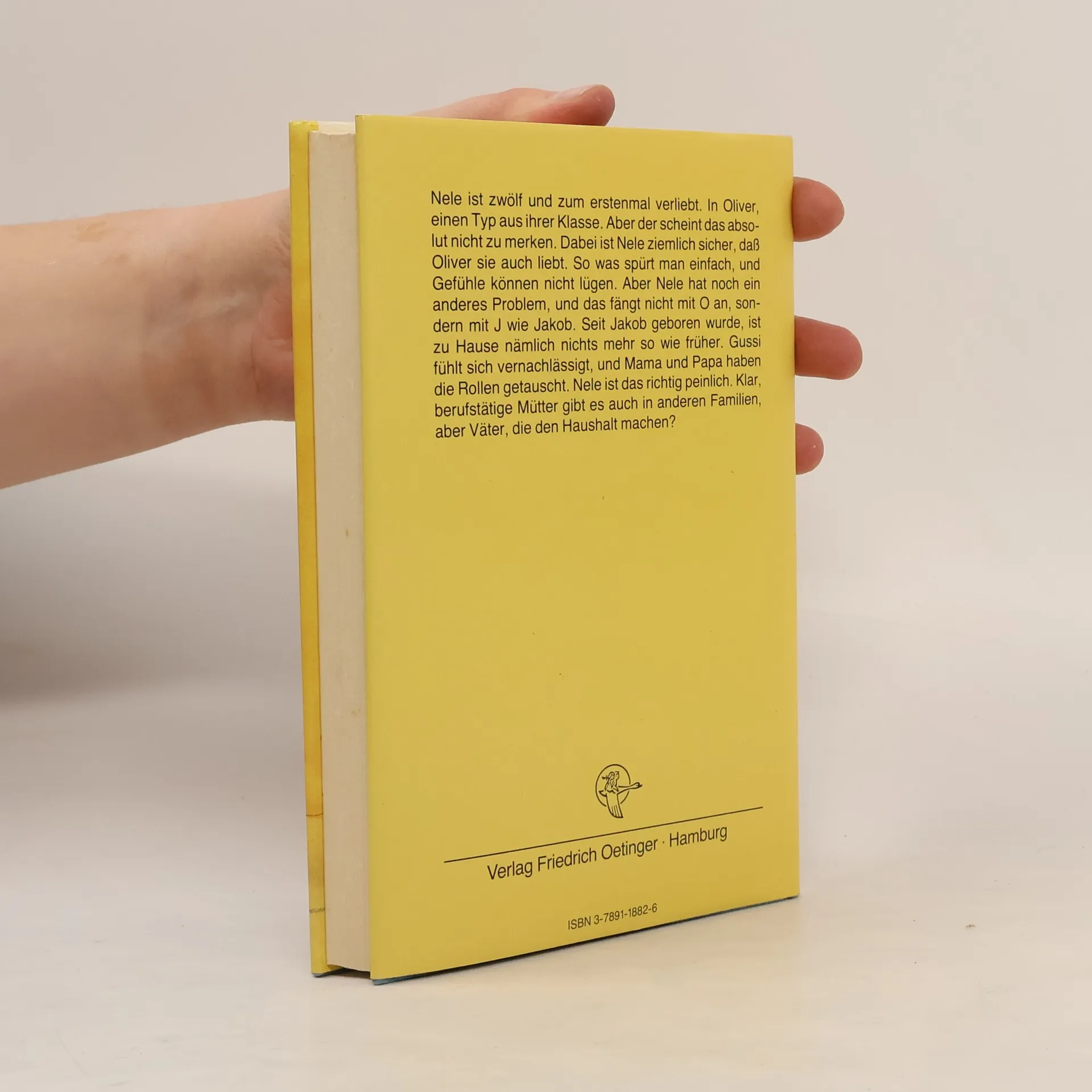 Nele ist zwölf und zum ersten Mal verliebt. In Oliver, einen Typ aus ihrer Klasse. Aber der scheint das absolut nicht zu merken. Dabei ist Nele ziemlich sicher, dass Oliver sie auch liebt. So was spürt man einfach und Gefühle können nicht lügen. Aber Nele hat noch ein anderes Problem und das fängt nicht mit O an, sondern mit J wie Jakob. Seit Jakob geboren wurde, ist zu Hause nämlich nichts mehr so wie früher. Gussi fühlt sich vernachlässigt und Mama und Papa haben die Rollen getauscht. Nele ist das richtig peinlich. Klar, berufstätige Mütter gibt es auch in anderen Familien, aber Väter, die den Haushalt machen?