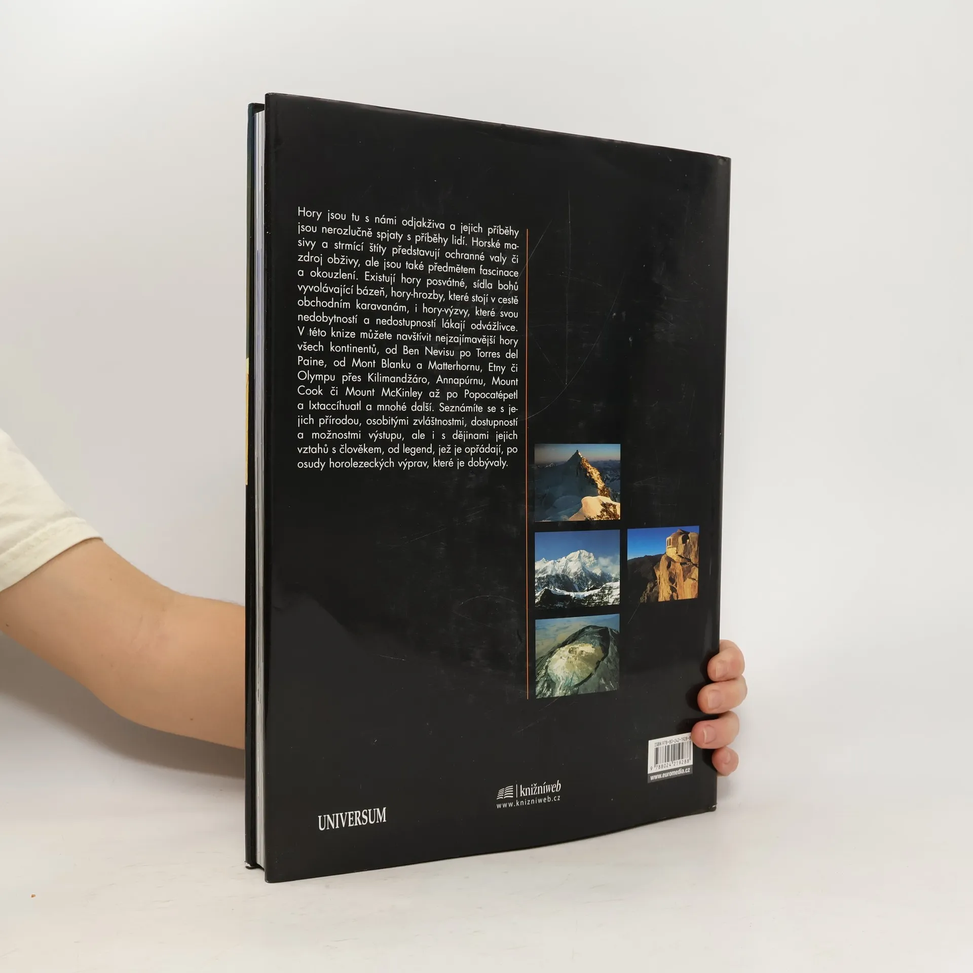 Výpravná obrazová publikace je věnována největším, nejslavnějším a nejpozoruhodnějším horám všech světadílů, které odnepaměti dráždily zvědavost a ctižádost mnoha lidí. Jedinečné fotografie doprovázejí texty o přírodních zvláštnostech jednotlivých pohoří i vrcholů, ale především o dějinách jejich dobývání, o úspěších a tragédiích horolezeckých expedic a osudech odvážných mužů a žen, kteří se na vrcholky vydávali.