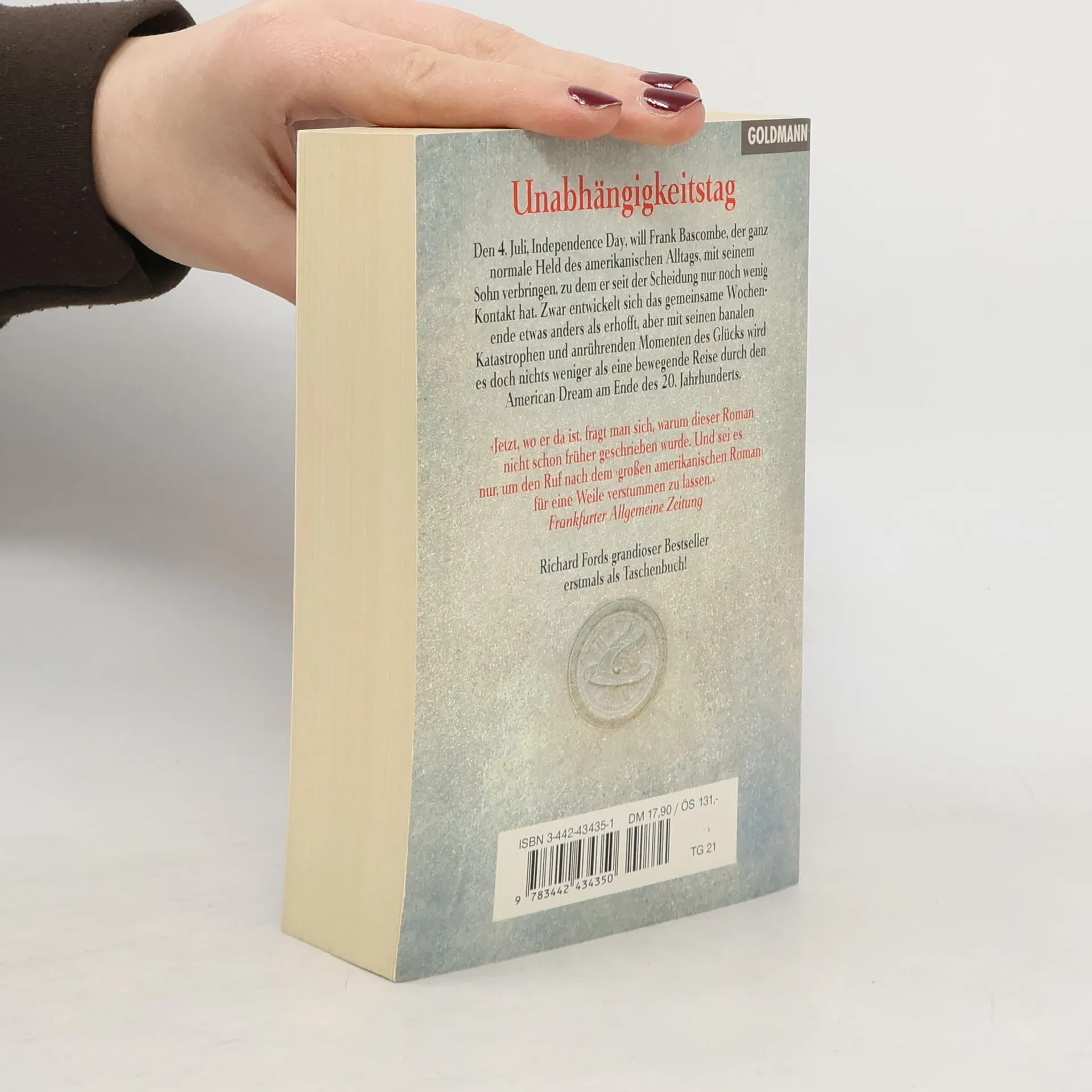 Der 4. Juli 1988, das ist der Tag, an dem Frank Bascombe alles richtig machen will: seine Freundin besuchen, sich um seinen Sohn kümmern - doch es kommt mal wieder anders. Richard Fords Prosa kennzeichnet atmosphärische Dichte und eine atemberaubende Präzision bei der psychologischen Ausleuchtung seines Helden: Unabhängigkeitstag ist ein literarisches Meisterwerk, ein Meilenstein der Gegenwartsprosa.