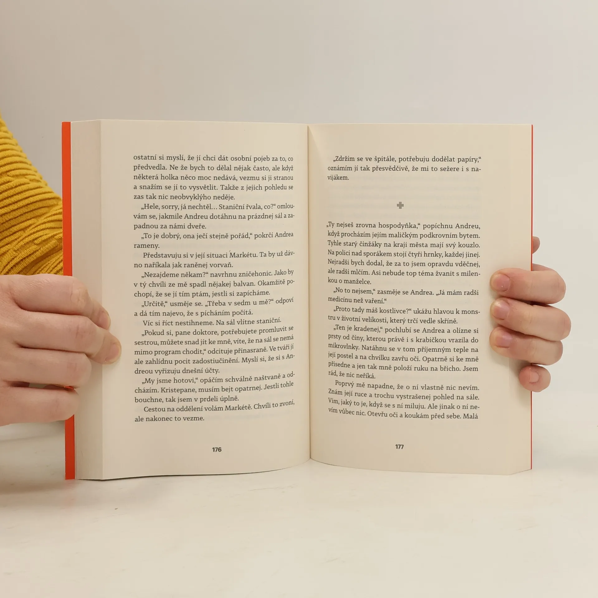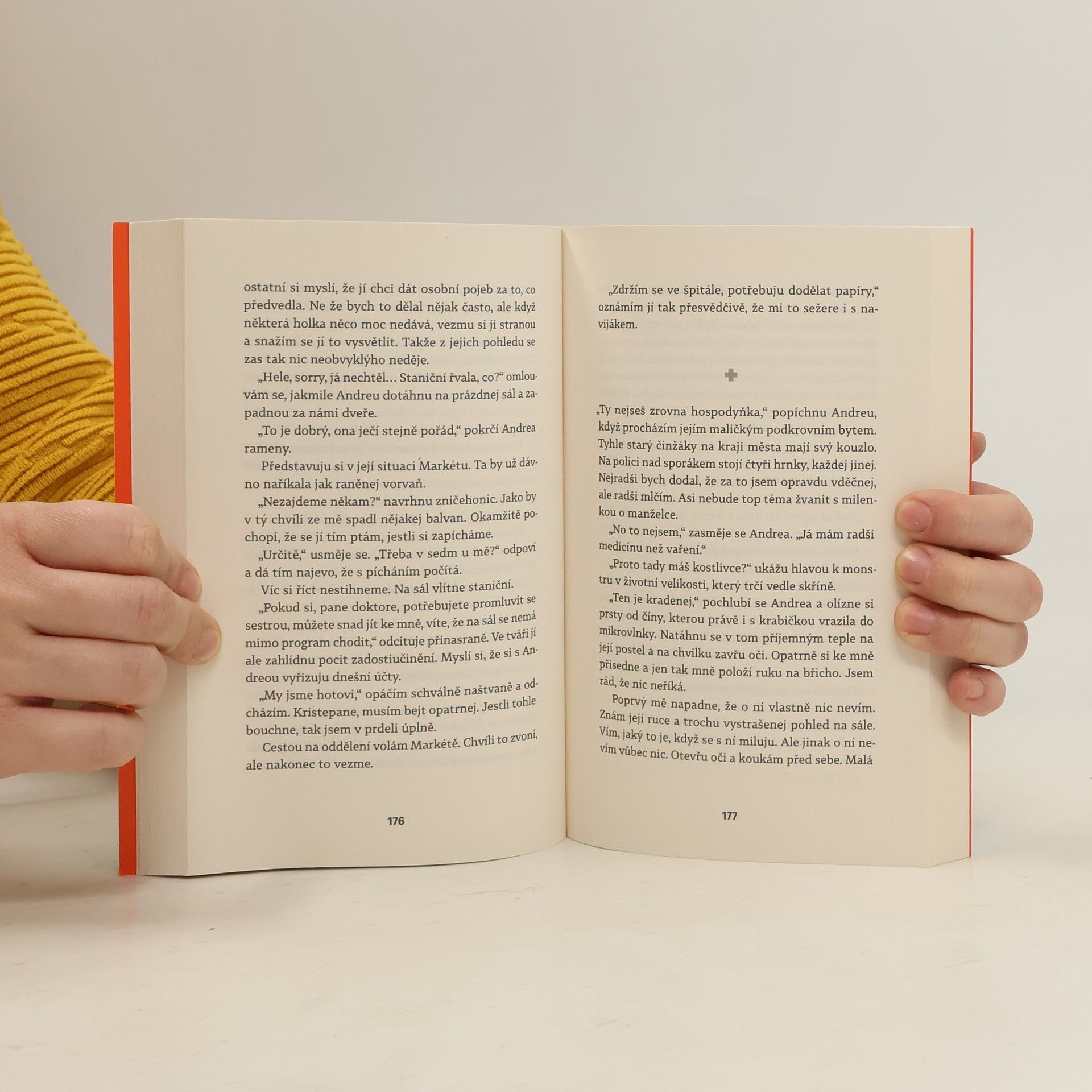 Před sebou neutečeš! „Nedokážu být ani rovnej, ani křivej. Můj život se rozlomil vejpůl a já už nečekám žádný pevný lano, který mě bude jistit,“ přemítá MUDr. Hynek Grábl, chirurg v příhraniční nemocnici, který už ani nedoufá, že by se jeho život ještě někdy mohl vyvíjet příznivěji. Kariéra špičkového odborníka na pražské klinice předčasně skončila kvůli jednomu karambolu s alkoholem a následky teď musí nést nejen on, ale i jeho věčně nespokojená žena a dospívající děti. Životní ani finanční účetnictví nevykazují příznivou bilanci a na horizontu zítřka se objevují všechny symptomy krize středního věku. Gráblova snaha nalézt východisko se však podobá spíš jízdě na horské dráze a často končí kocovinou. Pomůže mu milovaná profese, milenka nebo nová šance vrátit se k zajímavé operativě a kariérně růst? Na operačním sále i mimo něj se občas dá jen těžko poznat, kdo jakou hru hraje, kdo je vítěz a kdo poražený a kam povede další cesta. Hynkovi G. často nezbývá než věřit, že se nepotopí na úplné dno.